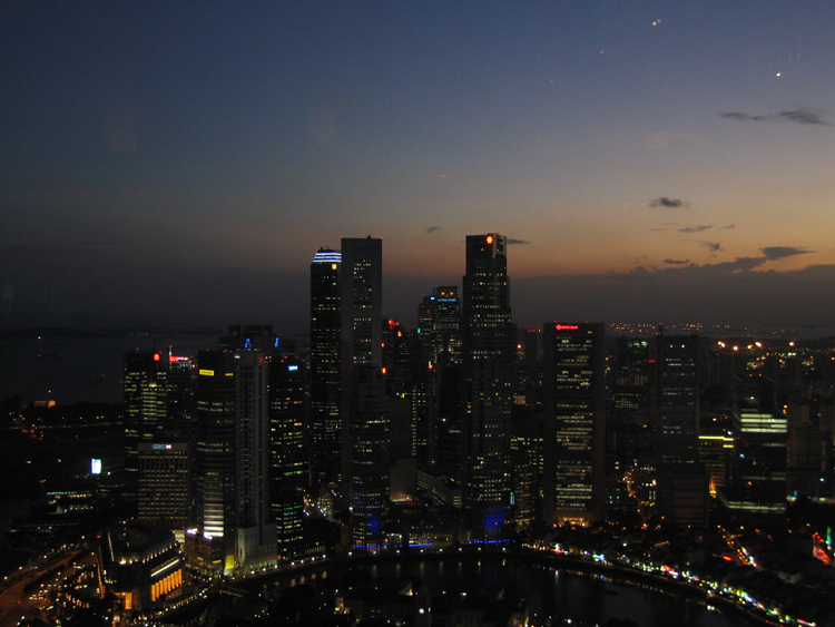 We ate dinner at the Equinox restaurant, which is on the 70th floor of the Swissotel Stamford. The Swissotel is in the Marina district, right near the Mandarin Oriental, where we'll be staying when we come back to Singapore after the weekend in Bintan. We could see a large portion of downtown Singapore (the Merlion, many of the Quays, the Queen's Walk, and the skyline), Sentosa Island, and many Indonesian islands (maybe Batam and Bintan?) as well. We came back to the hotel and crashed.