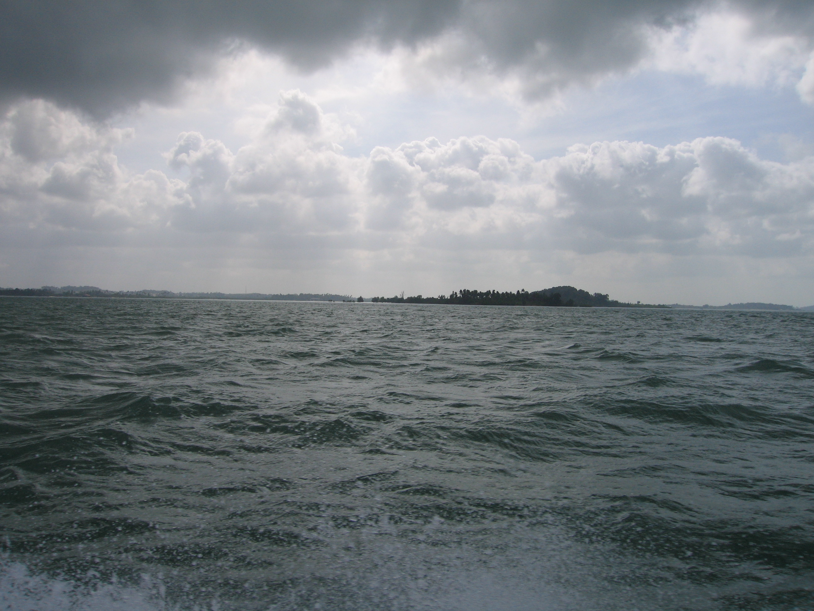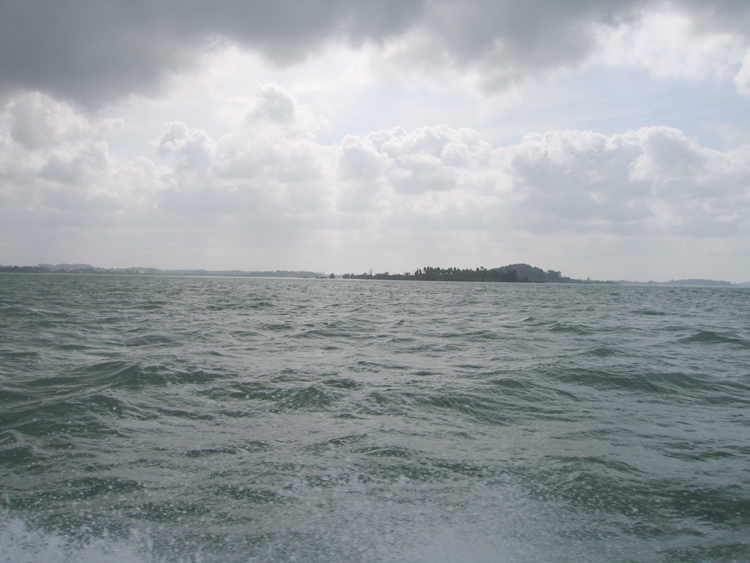 There we got a small boat and started heading off to the South (we think). We were in the water for about 15-20 minutes, hopping some large waves but for the most part floating smoothly. There were islands all around, including what we assumed to be Batam, another fairly common escape from Singapore . We arrived at a small island east of Batam that had a sign saying “Welcome to Dolphin Lodge.” There were about a half-dozen people in short wetsuits there to greet us.