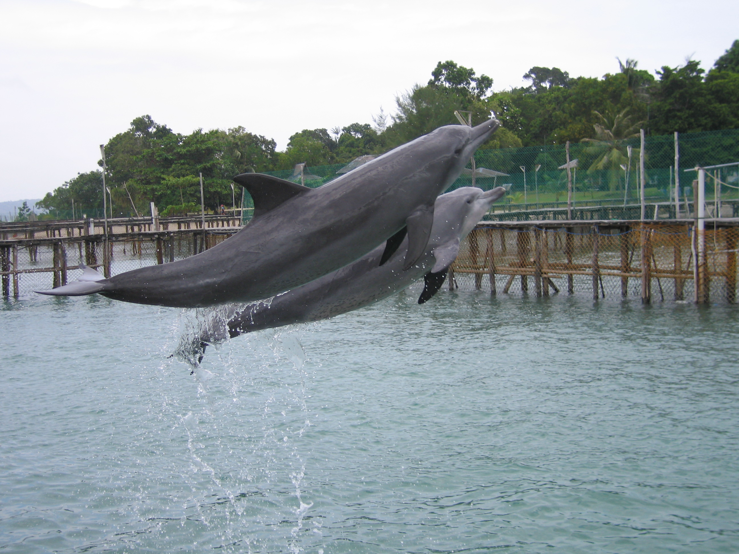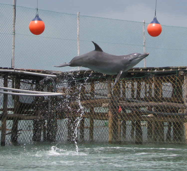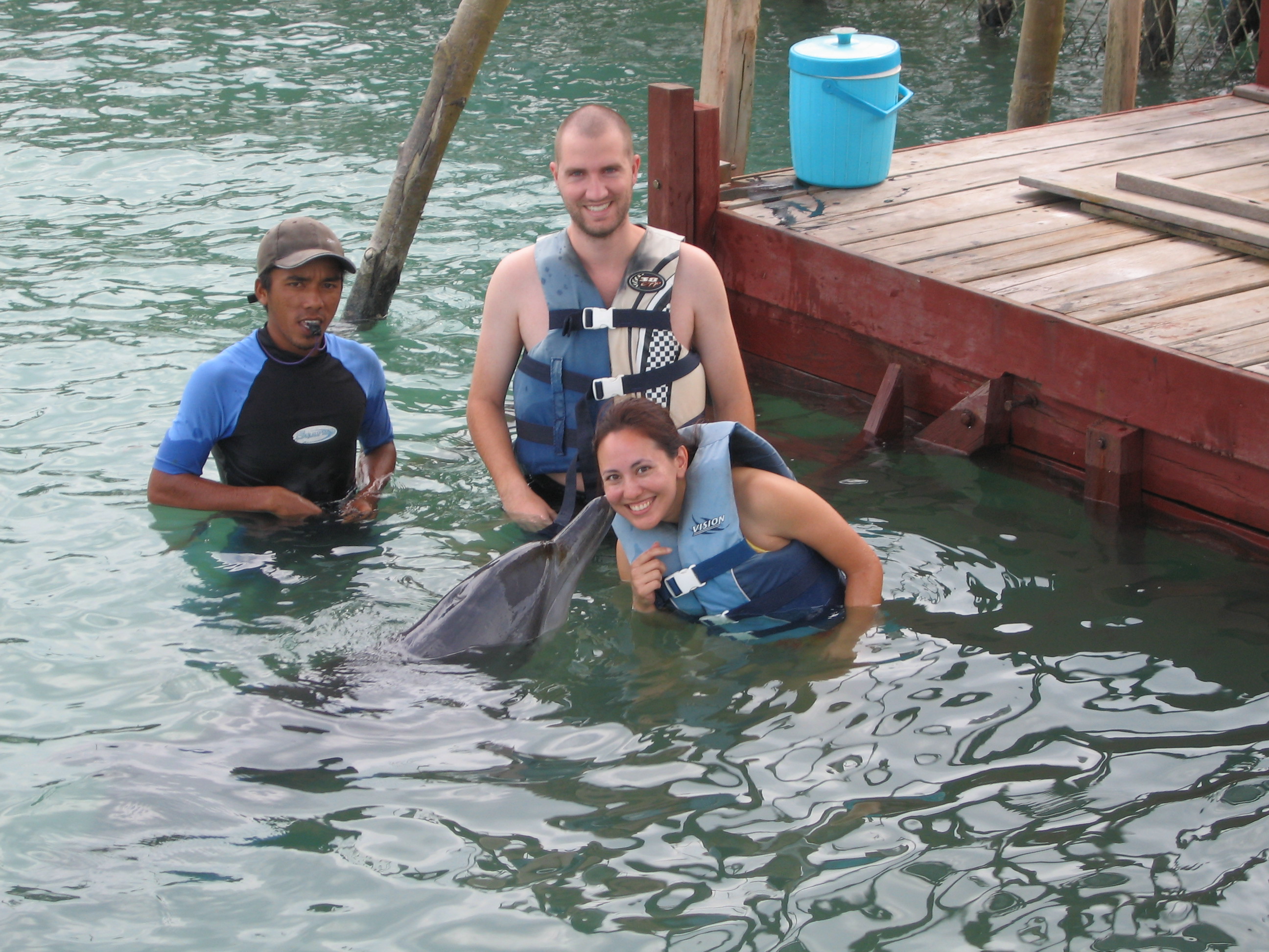 This place was evidently a mini Sea World, with bonafide dolphin trainers. They knew about Sea World, as when we told them we were from San Diego they knew Sea World was there. They gave us a small briefing, and then we broke off into groups to be with the dolphins. We were in a group with the two other people from the Banyan Tree, two trainers, and one other trainer who used our camera to take some phenomenal photos throughout the morning.