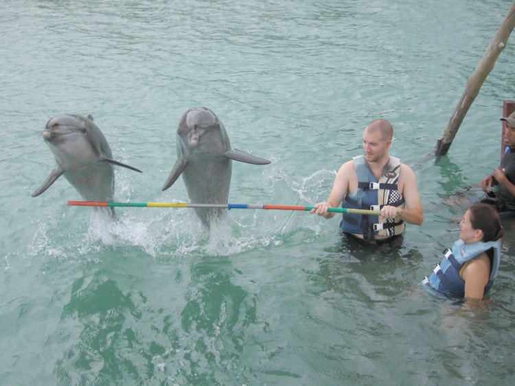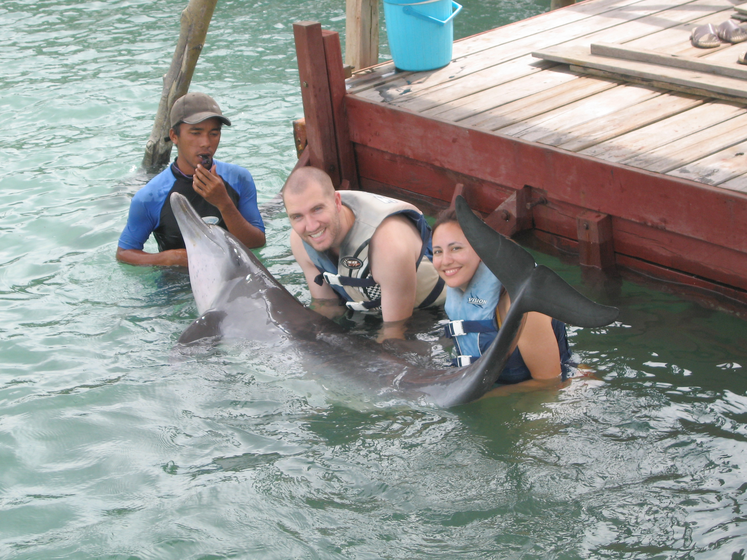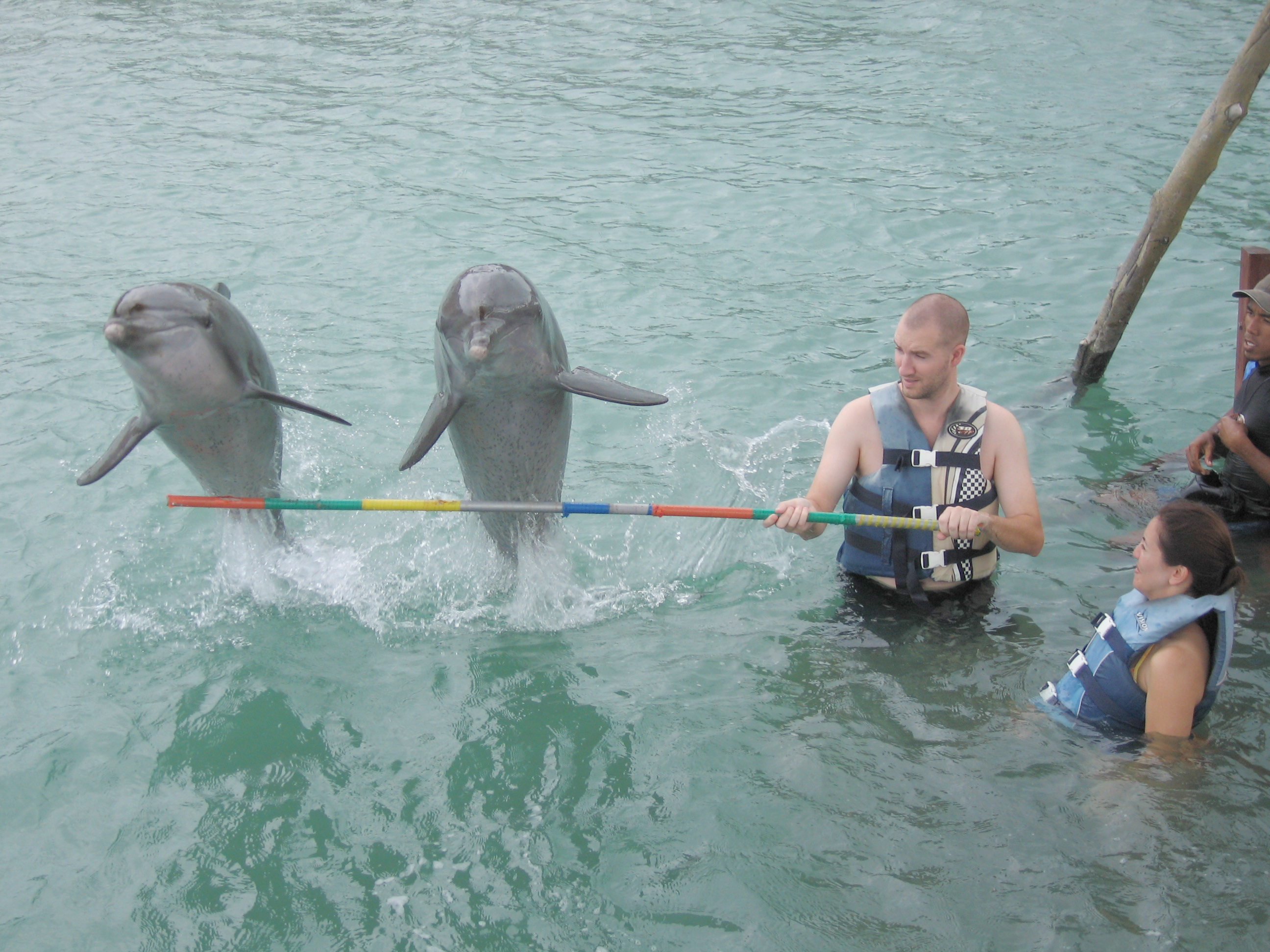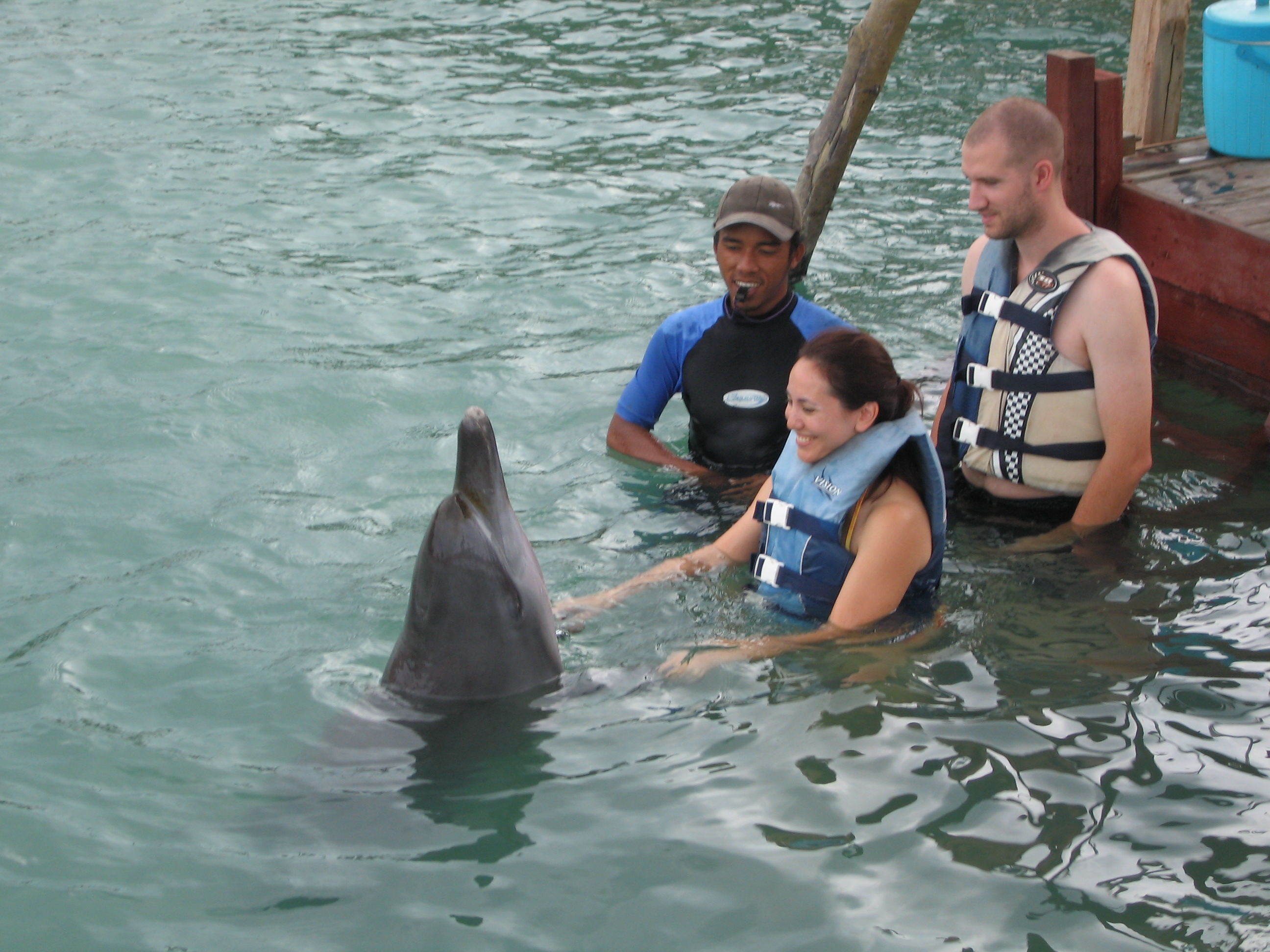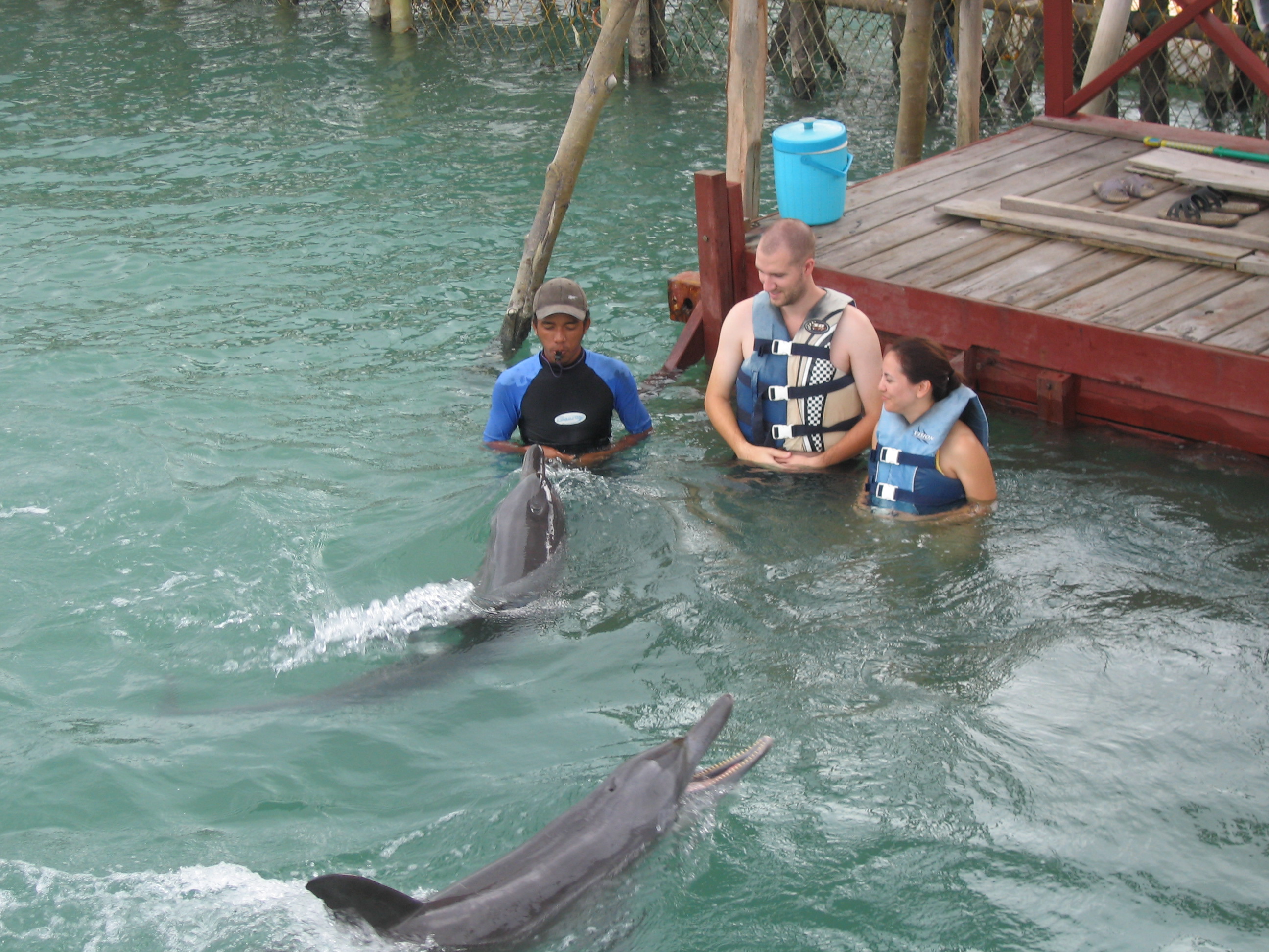 Today we woke up a little early, which was easy because of the one hour time change, so that we could eat before our one planned excursion for the day. We originally had nothing planned, but the night before we noticed in the information booklet for the hotel that there was a dolphin excursion where you could play with the dolphins. There wasn't a whole lot of information, but from the little given we assumed we'd take a car ride over a couple of resorts where the resort would have a big pool with a dolphin or two.