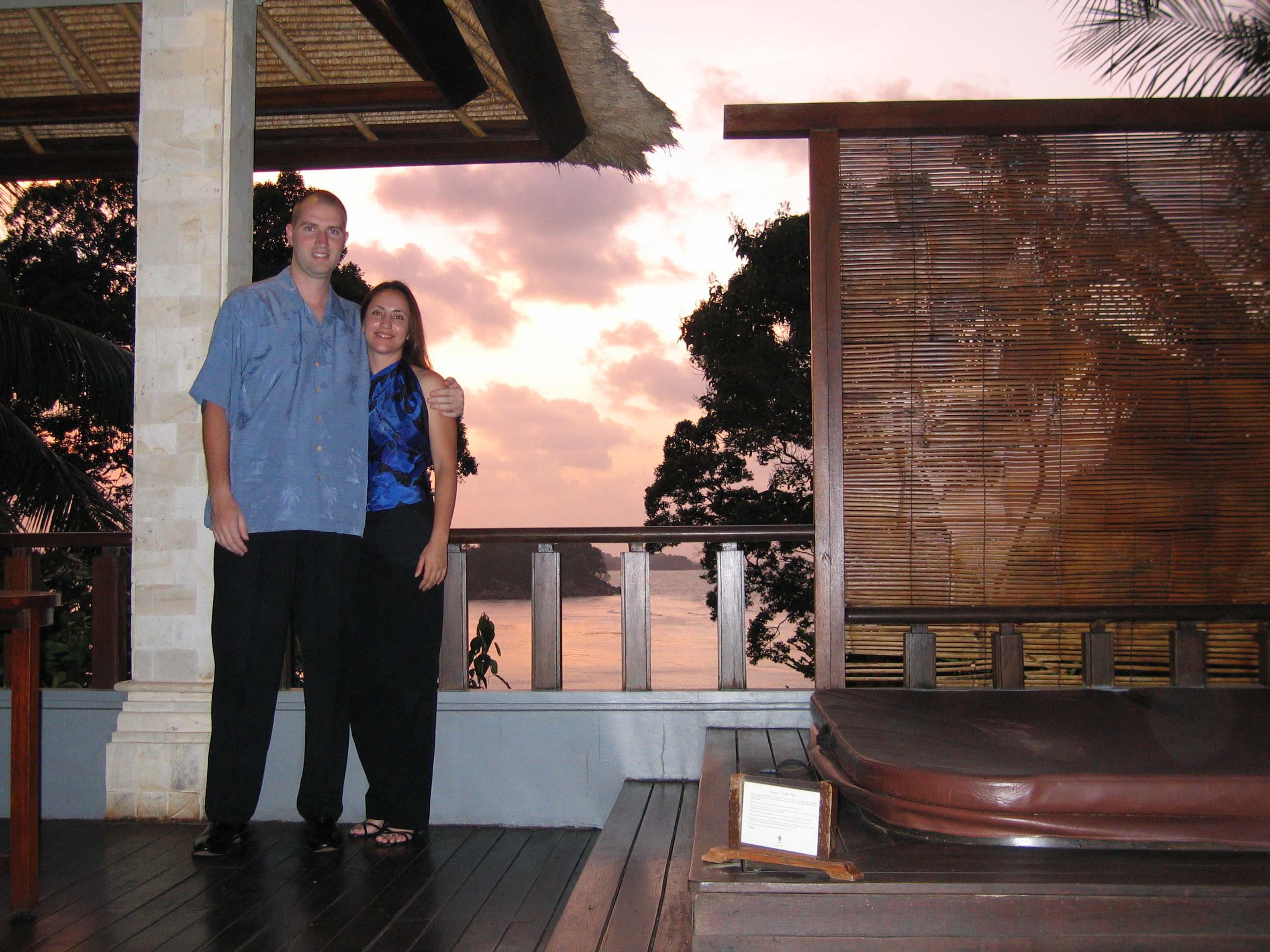 After the pool experiment we went back to the room and used our private Jacuzzi, which we knew would be warm. It was very nice, but had a weird layout, and the only places with headrests were in opposite corners from one another, and one of the headrests faced right towards the sun. All of these are minor complaints, however. Everything at the Banyan Tree was first class, a 1a behind Amanpulo (where we spent our honeymoon). Many people knew our names, everyone was very polite, and everyone always had a smile.