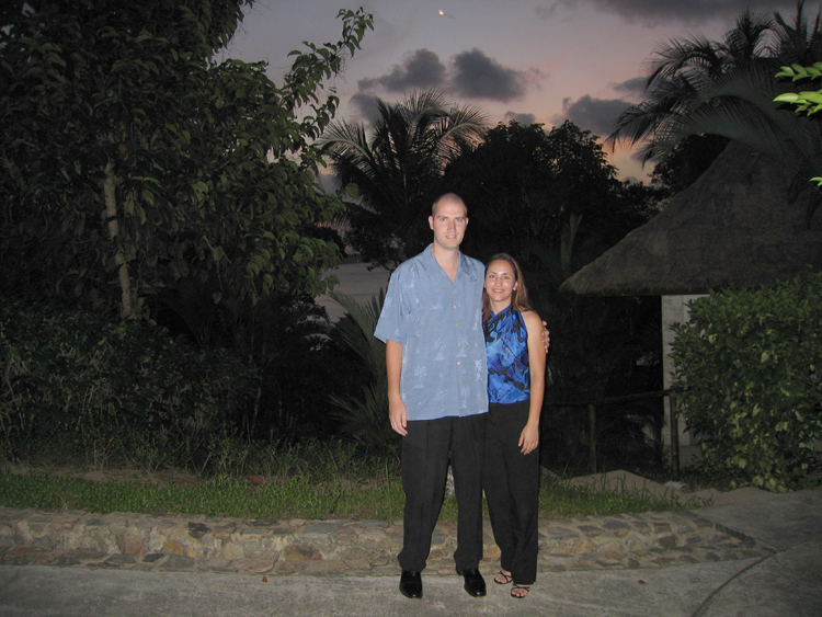 We ate dinner at Saffron, the flagship restaurant of the Banyan Tree, which served Indonesian and Thai food. Justin had Thai noodles with sliced beef and vegetables, and Crystal had Indonesian Roast Duck. Justin had another Mai Tai for comparison's sake. It was better than the one at the Shangri-La, which was a little bitter. For the first hour at the restaurant we were the only people there, so the service was impeccable. We've noticed throughout this trip that most other tourists eat much later than we do. We've been eating more or less at 7, 1 and 7 for most of the trip. This makes us think that most of the other Caucasian tourists we see are from Europe , which generally eats meals much later. We went back to the room and fell asleep quickly. We were both tired from all of the sun at the dolphin place. We didn't know we'd be out in the sun for nearly that long, and both of our shoulders took a beating.