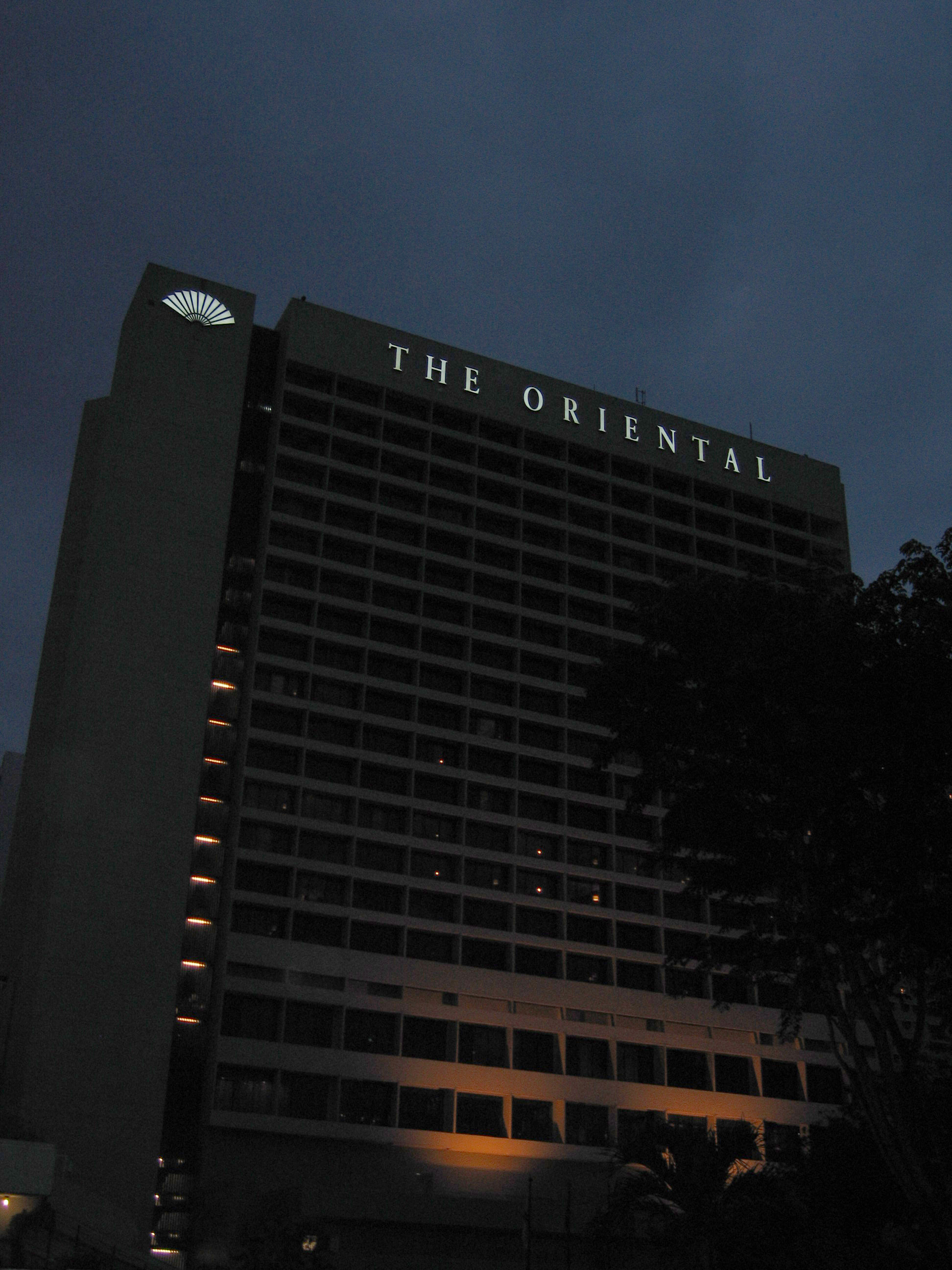 We caught a cab to the Oriental Singapore. When we were deciding where to stay in Singapore , we couldn't decide between the Oriental and the Shangri-La. When we decided to take a weekend side trip to Bintan, our time in Singapore was split 3 nights pre-Bintan, 2 nights post-Bintan. We decided to stay at both the Shangri-La and the Oriental since we'd have to pack up anyway. We also scheduled our events to be close to the hotel we'd be staying at, since the hotels are in different parts of Singapore and our events were closer to one hotel than the other. We had a little problem with the cabbie, since we thought the hotel was “Mandarin Oriental” instead of just “Oriental.” The cabbie caught Mandarin, and took us to one of the many “Mandarin” hotels in the city. Luckily it wasn't that far away.