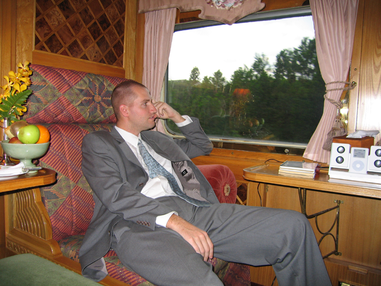 The train station itself was nothing special, but the train was immaculate, and much longer than we expected 22 cars. Our room (K4) was very small, as expected, but had enough room to store everything with room left to relax. We took our Crystal 's iPod and started playing some tunes a little gangsta rap somehow we think we're the only ones on the train who listen to this sort of music. There were maybe two other couples under 40, then of those remaining couples the median age was probably 65. And of all the couples, there was one Asian couple and everyone else was white very unlike everywhere else we'd been, even the Banyan Tree Resort.