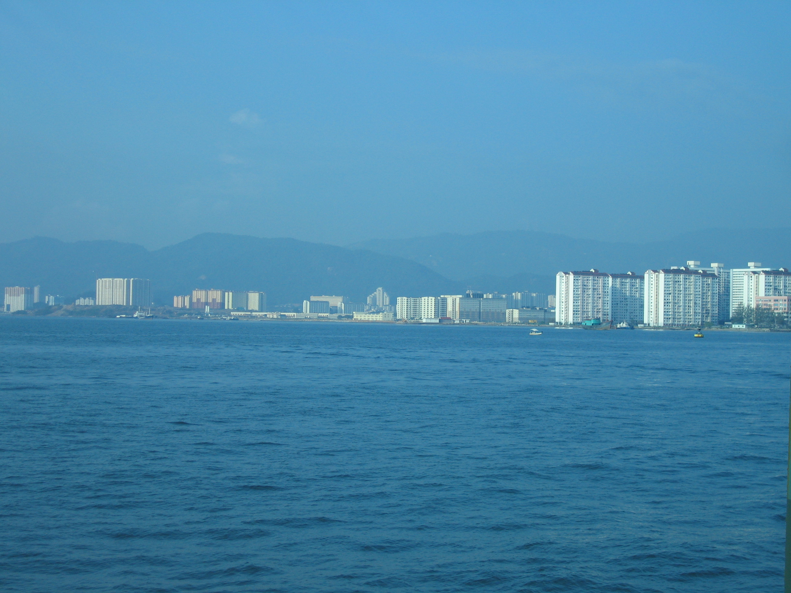We woke up a little cranky because of the lack of sleep, and the continental breakfast didn't help – it was pretty poor. We headed back to the observation car to see if any of the scenery had changed overnight – it hadn't. Still lots of oil palms and rubber trees. Some of the rubber trees had little catchment systems to catch the rubber. After a little bit we got off the train at Butterworth, which is on the Malaysian mainland right near the island of Penang, which is a popular tourist destination. We got on a bus, which then got on a ferry, and took the ferry across to Penang. During the short bus trip our guide told us all a little bit of Malaysian history, which we already knew because of our tour in KL the week before.