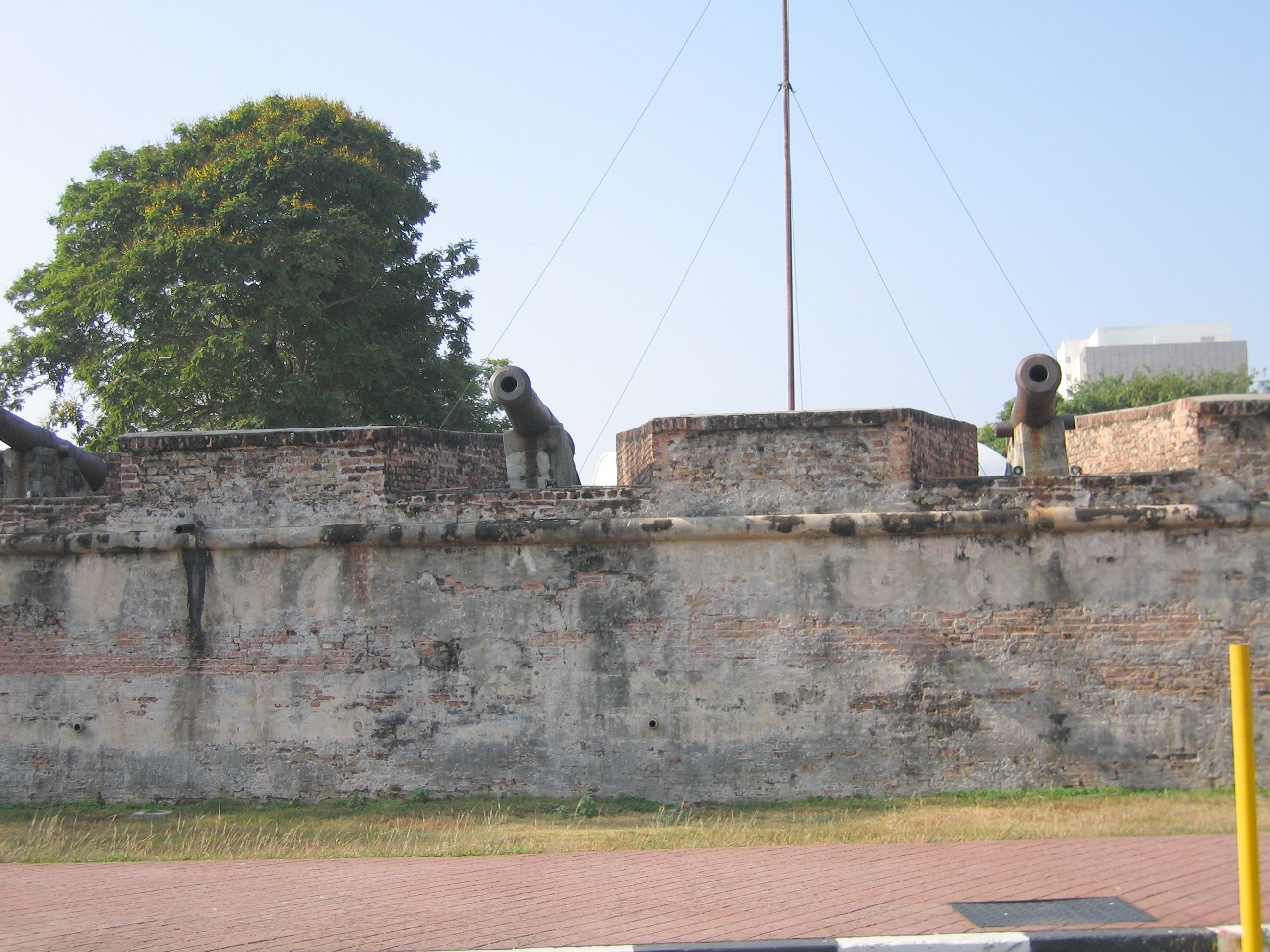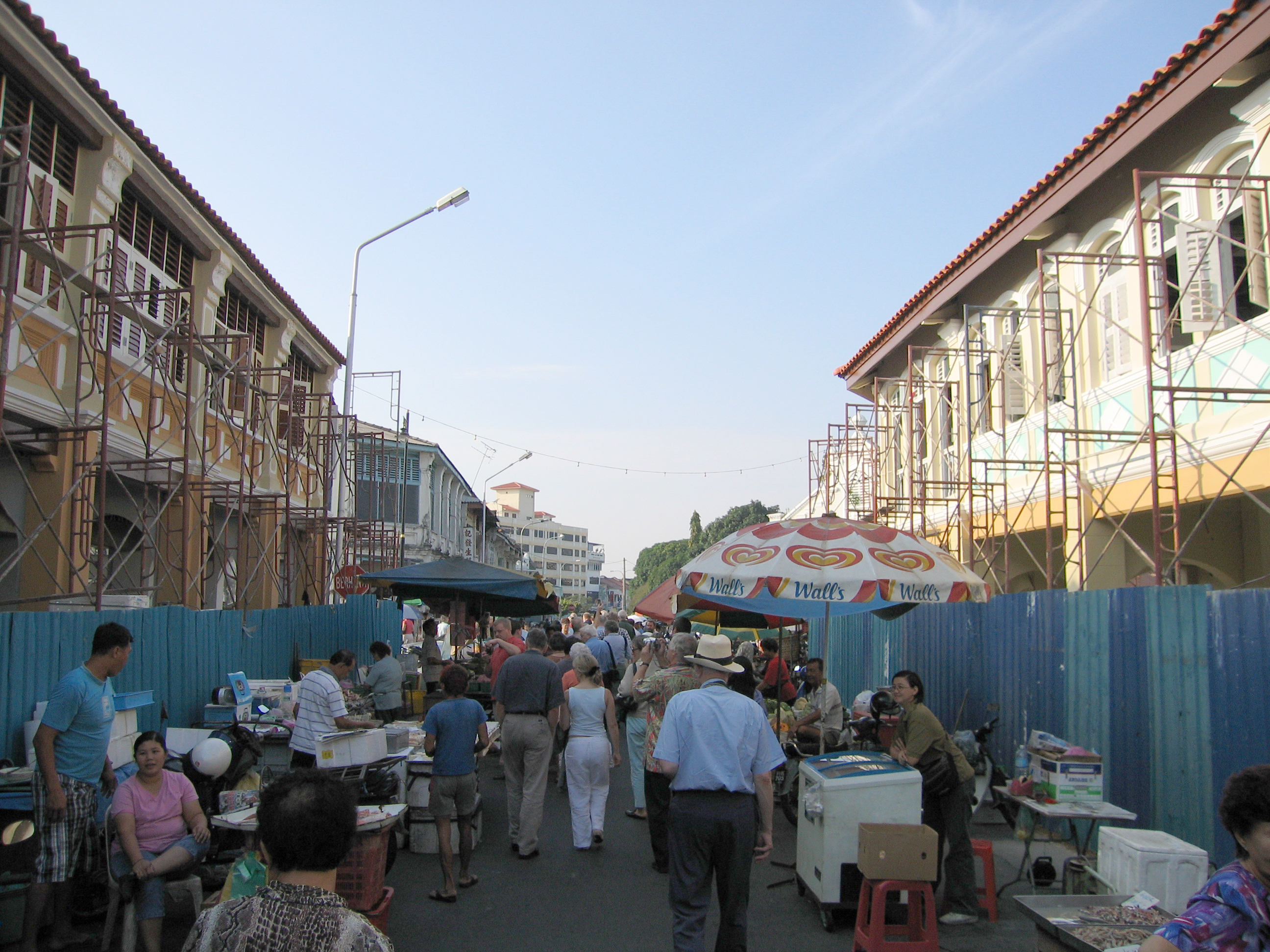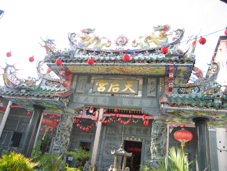 We got off the ferry in Georgetown, a colonial city with many buildings from its time as a British base still around. We all wandered through the busy city streets and a street market as one large, disorganized group. It reminded us of field trips in elementary school. After a bit of walking, we all got onto trishaws (like rickshaws but the person is riding a bicycle and so there's a third wheel in the back. On the trishaw ride we saw some mosques, some temples, some churches, and an old British fort – Fort Cornwallis. The city is quite rundown because rent control was done away with a few years back, the prices got jacked up, no one could afford it, and now many of the buildings are vacant and the owners have no income.