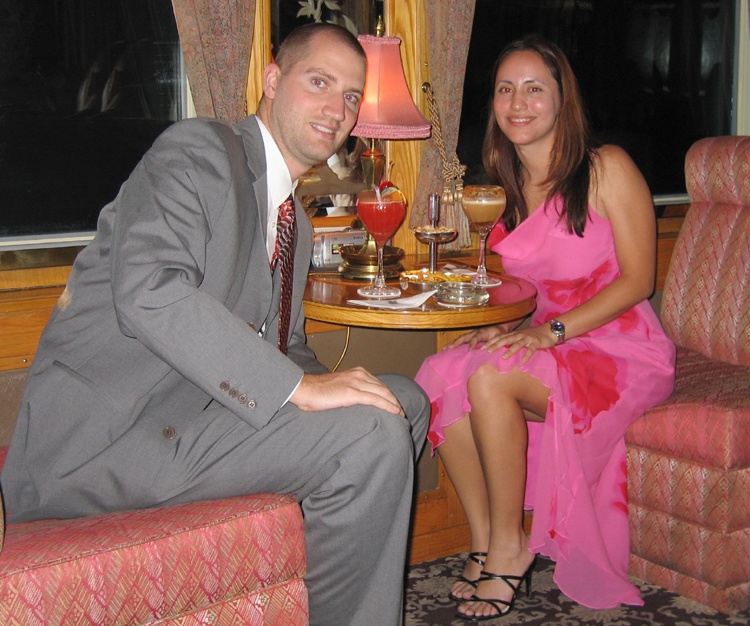 Just before dinner we were treated to an authentic Thai dancer performing – we have no idea if she was authentic, but she could dance much better than we could. At dinner, Crystal ran out of room for food (they give you a ton), and the staff kept trying to talk her out of it. At last they came to a compromise, stating that they wouldn't bring out the main course, but only if she agreed to let them put a plate of fresh fruit in our room in case she got hungry in the middle of the night. After dinner we went to the piano bar, which we avoided the first night because 1) we were underdressed and 2) we thought we wouldn't fit in. We went this night because we figured it would be a long time before we got on a train again, and we wanted to know what it was like to be in a pompous piano car with a bunch of rich retired folks. It was about as expected, but we enjoyed it nonetheless. We tried to figure out the songs the piano player was playing – Justin got most of them, guessing songs from show tunes. In his formative years his parents tortured him with hours upon hours of show tunes on the stereo, so when the piano player started playing “Memory,” "That's All I Ask Of You," and “Phantom of the Opera” Justin unfortunately knew the songs. Crystal must have looked nice in her gown, as some German lady wanted to take a picture of Crystal, by herself. It was a little odd – maybe it's a German thing. We got to sleep alright, probably because of lingering exhaustion from the night before.