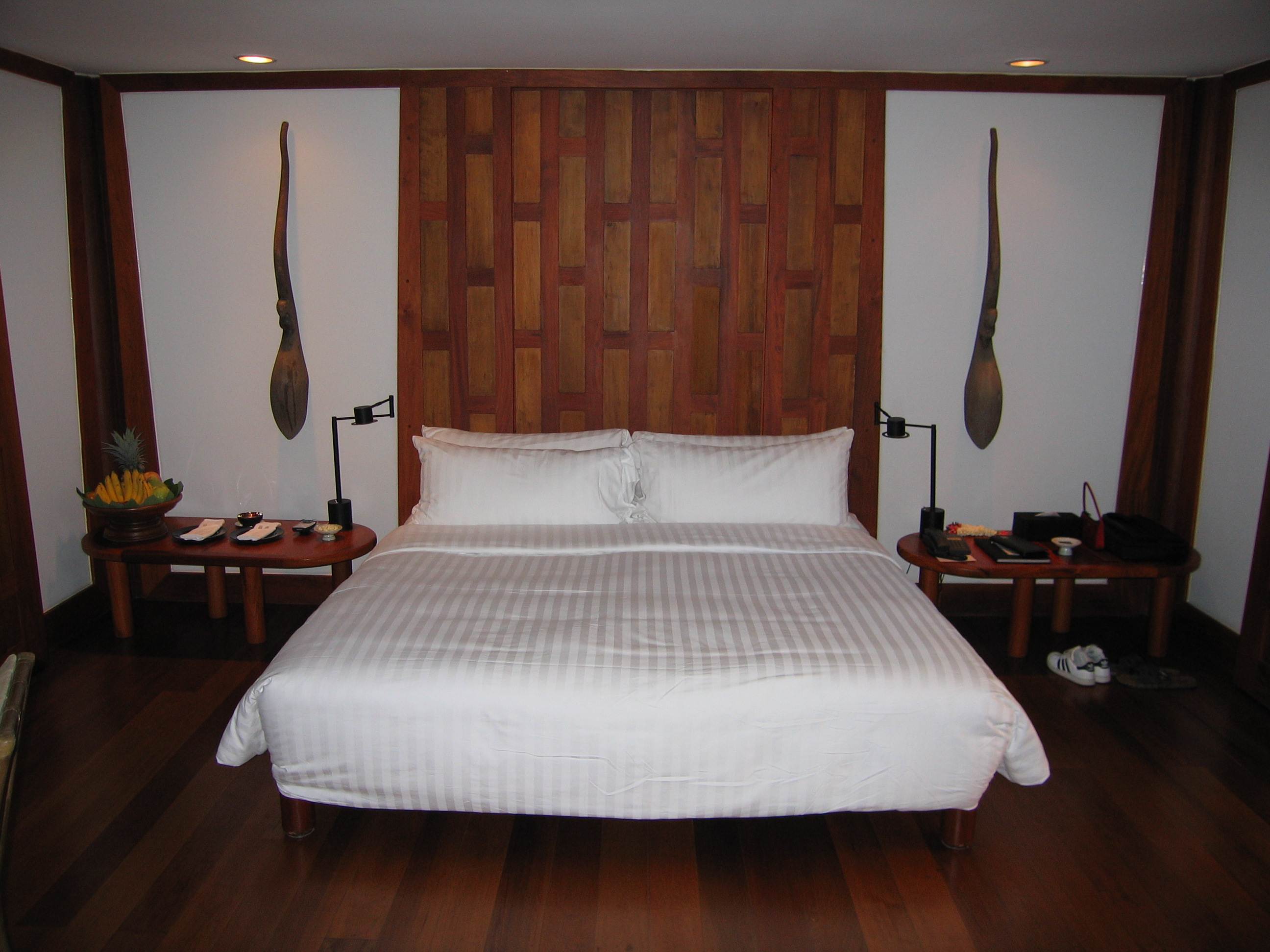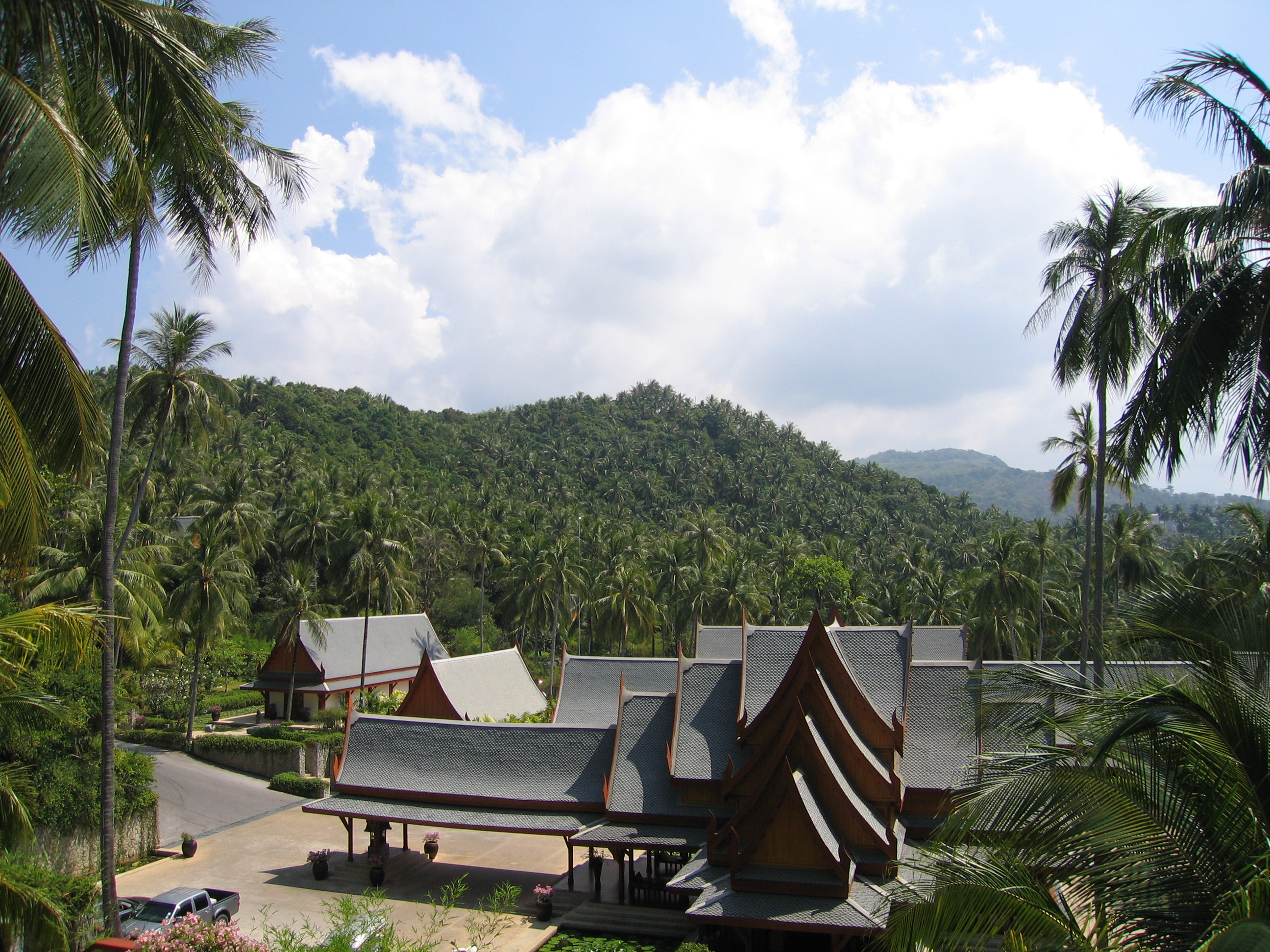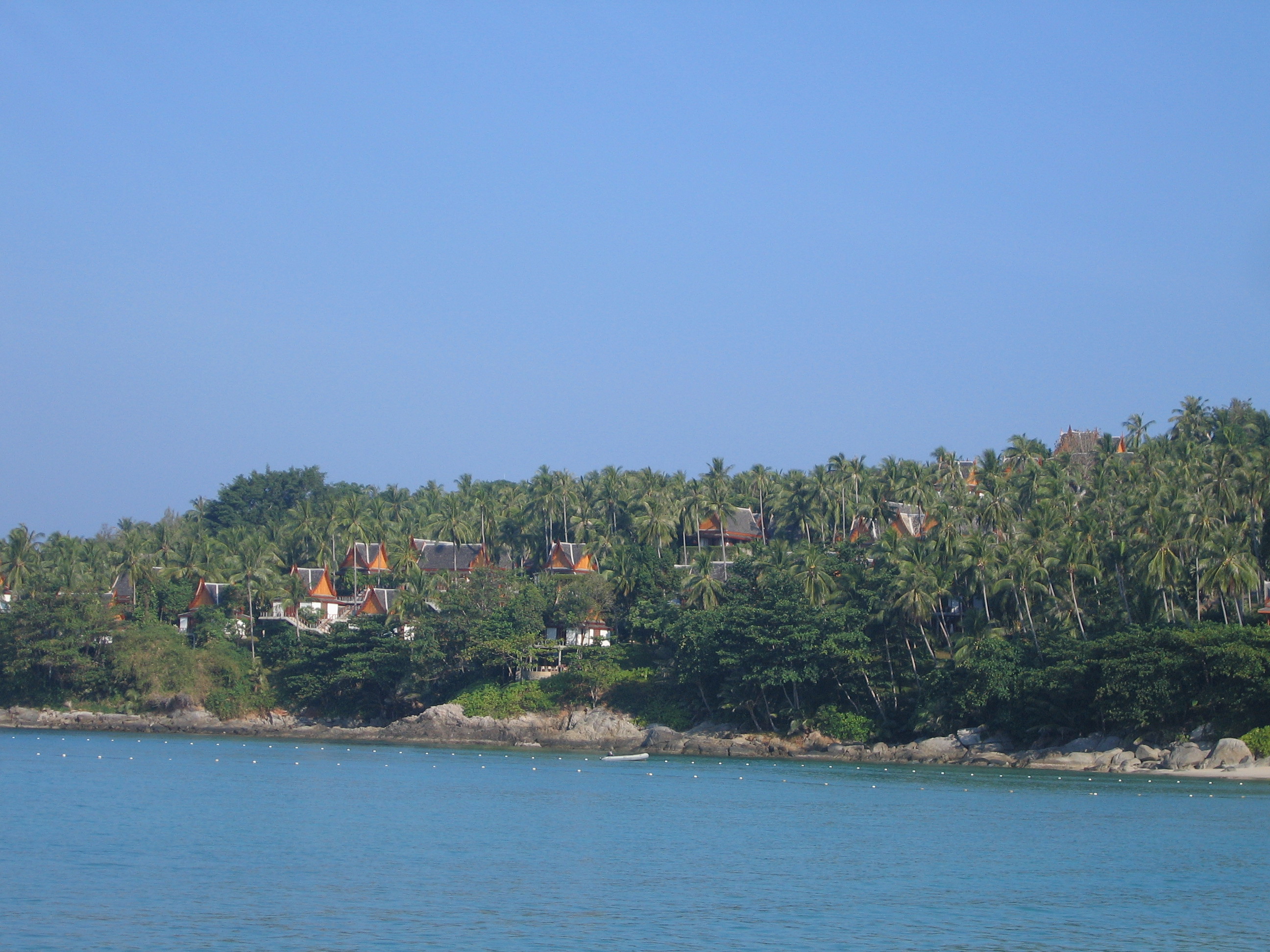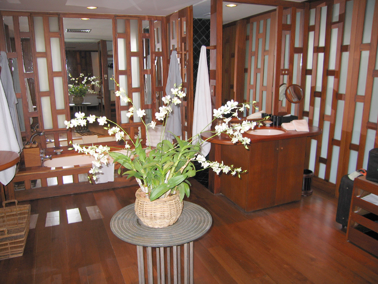 When we originally planned our trip, we were going to stay in the Le Meridien, farther south on Phuket. When the tsunamis hit, however, the Le Meridien was damaged and had an uncertain re-opening date, so we decided not to take any chances and immediately changed our reservations to Amanpuri. We had stayed at one of the other Aman resorts – Amanpulo, for our honeymoon in April of 2000. We figured Amanpuri would be damage free because it is built on a steep hillside covered by coconut trees. Amanpuri's gym that was right on the beach was wiped out, but everything else was totally untouched. As it turned out, the Le Meridien won't be open until the spring time, so it's good that we changed our reservations when we did, rather than wait.