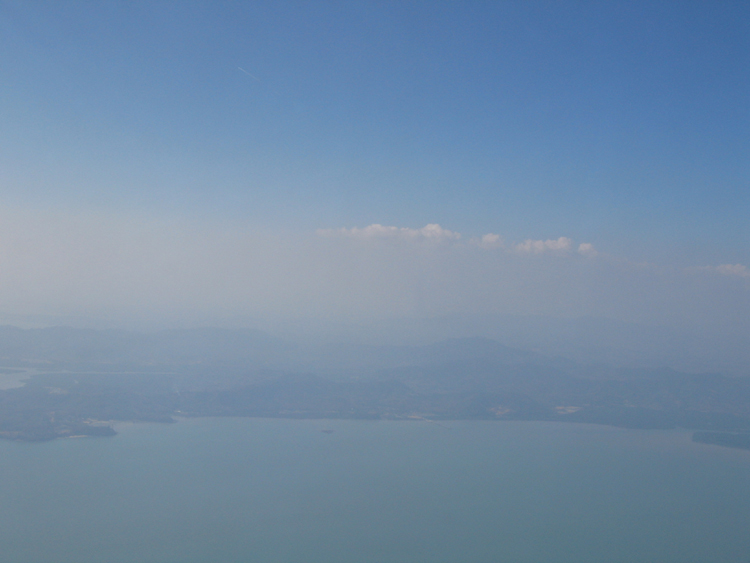 We got to the airport and ate lunch. Normally airport food is both overpriced and tastes horrible, but at the Bangkok airport the food was both very good and very cheap. Lunch for the both of us was less than $10. We went down to the gate, which was interesting. The gate was air-conditioned, but it had doors to outside where buses would take people to the planes, which were a short bus ride away. Anyway, the doors were open almost the entire time, so the air conditioning was attempting to cool down seemingly the entire outdoors.