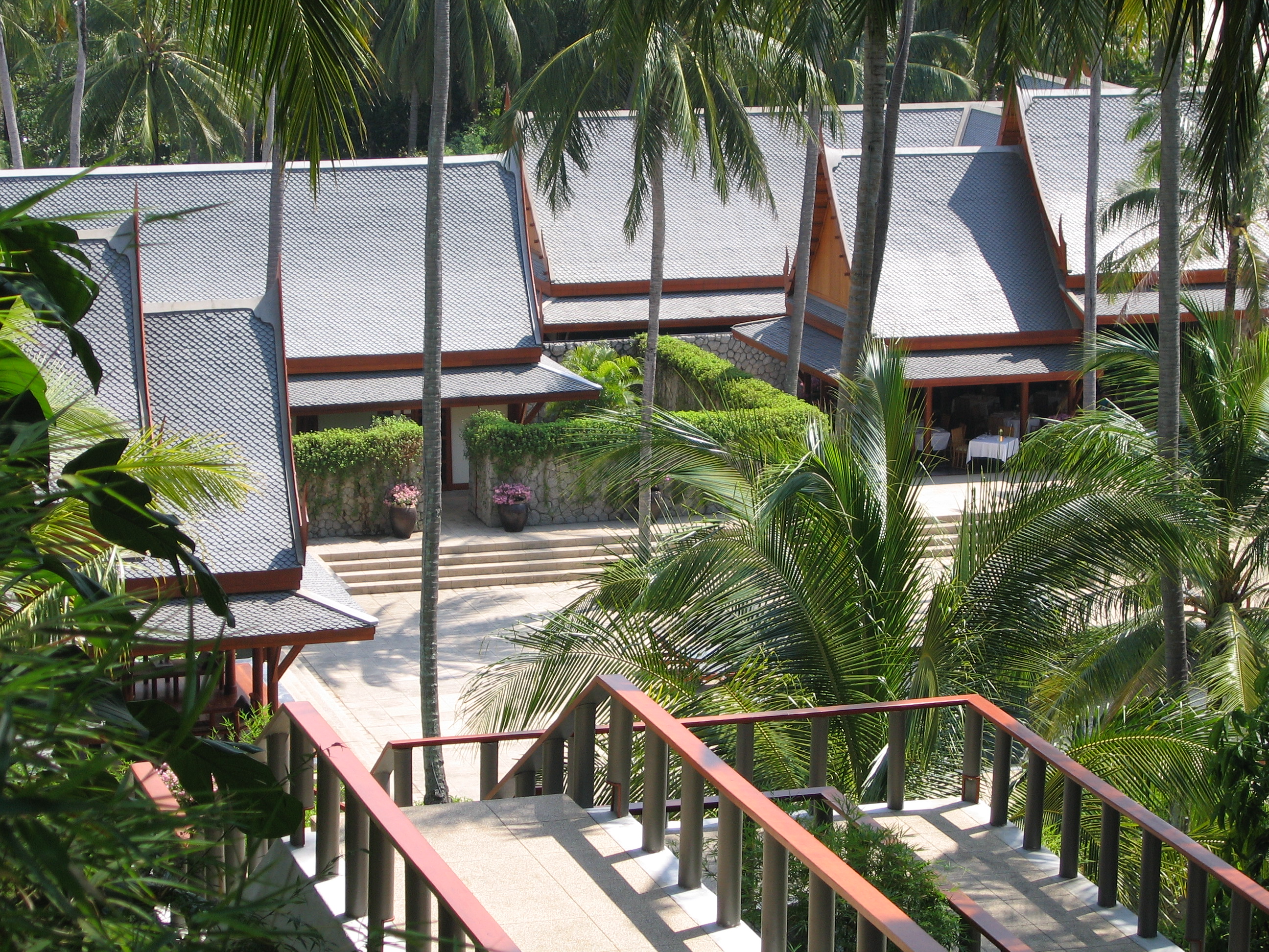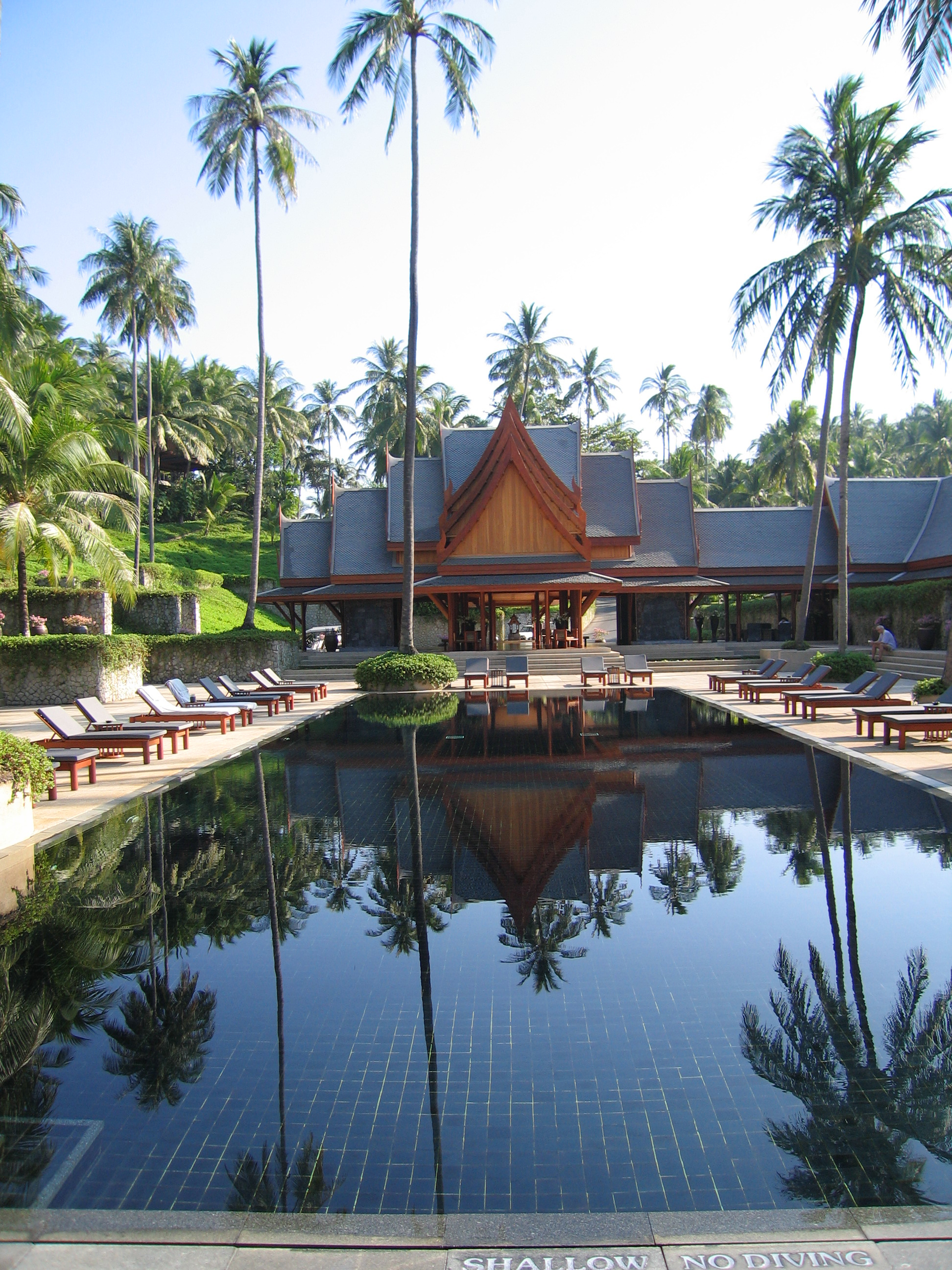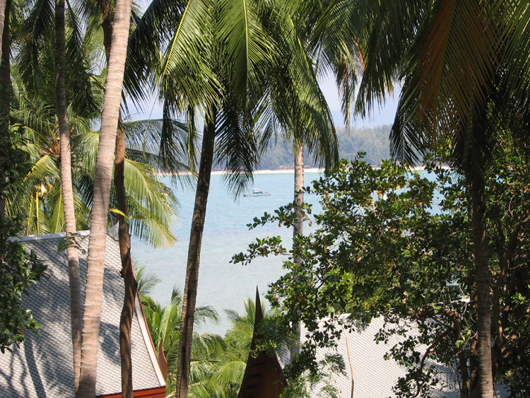 We paddled back to the beach and hung out there for a little bit longer. Crystal stayed down at the beach (and fell asleep), while Justin first went up to the pool, then started wandering around the entirety of the resort. Amanpuri is very large – there are about 40 rooms, but then there are also about 25 large villas spaced out over the grounds, not to mention the spa, the tennis courts, the restaurants, and the main area. We had seen in some books that Amanpuri was on Pansea beach, whereas in other books Amanpuri was listed as being on Surin beach. It turns out that both were probably correct. Amanpuri is on the end of a small isthmus, so it's surrounded on 3 sides by water. The villas are all near the north facing beach, while the main resort is on the west facing beach.
