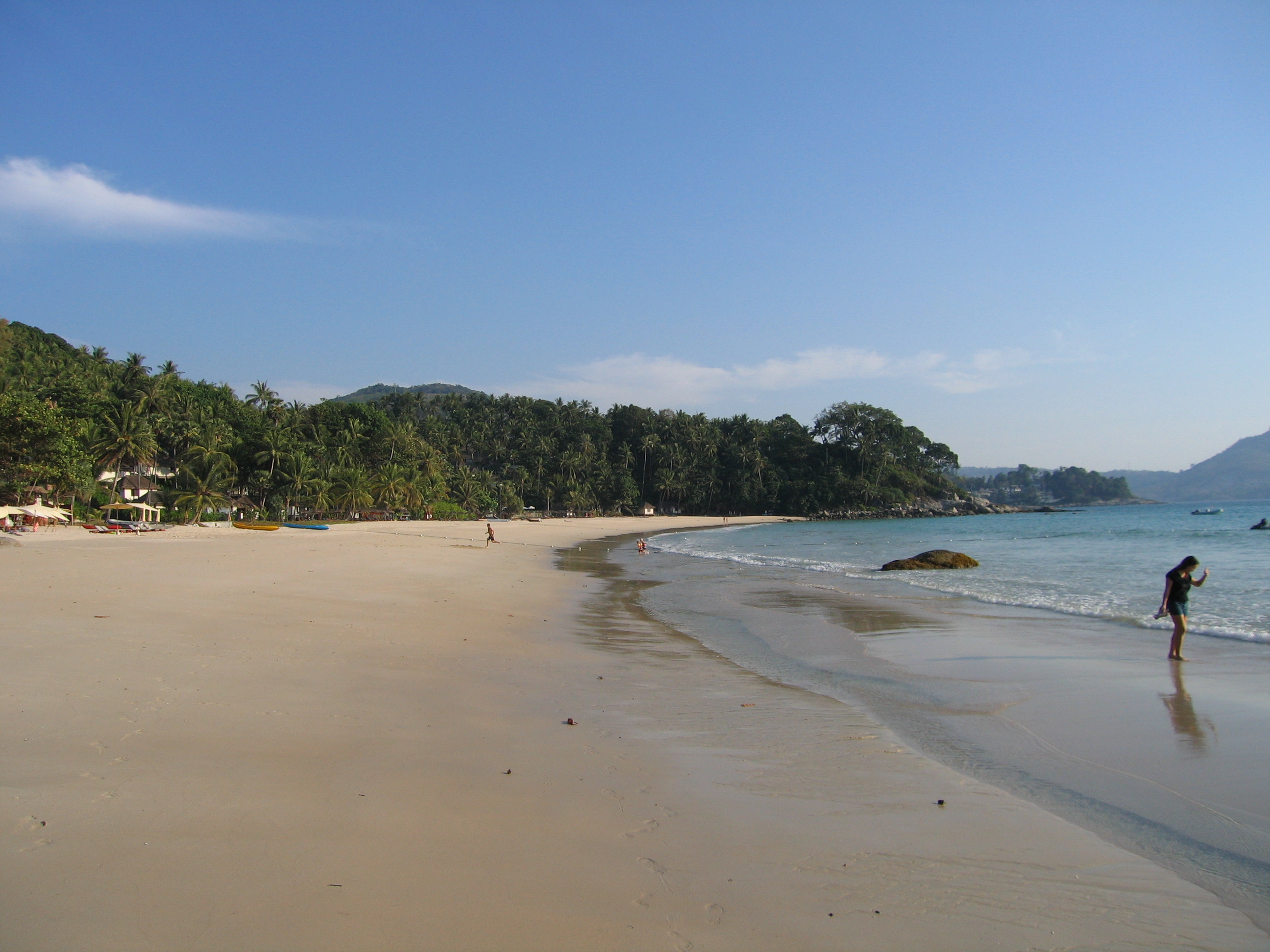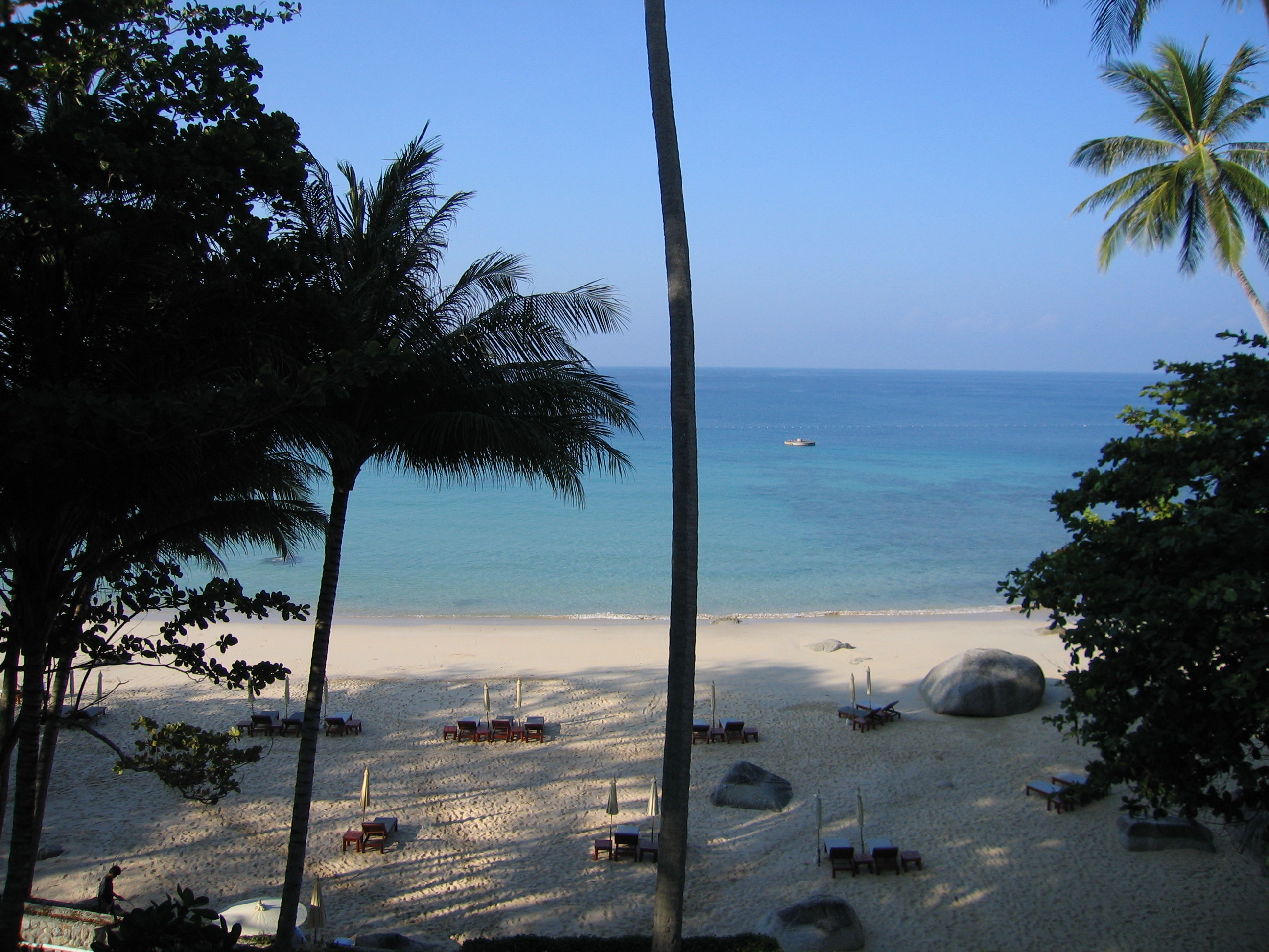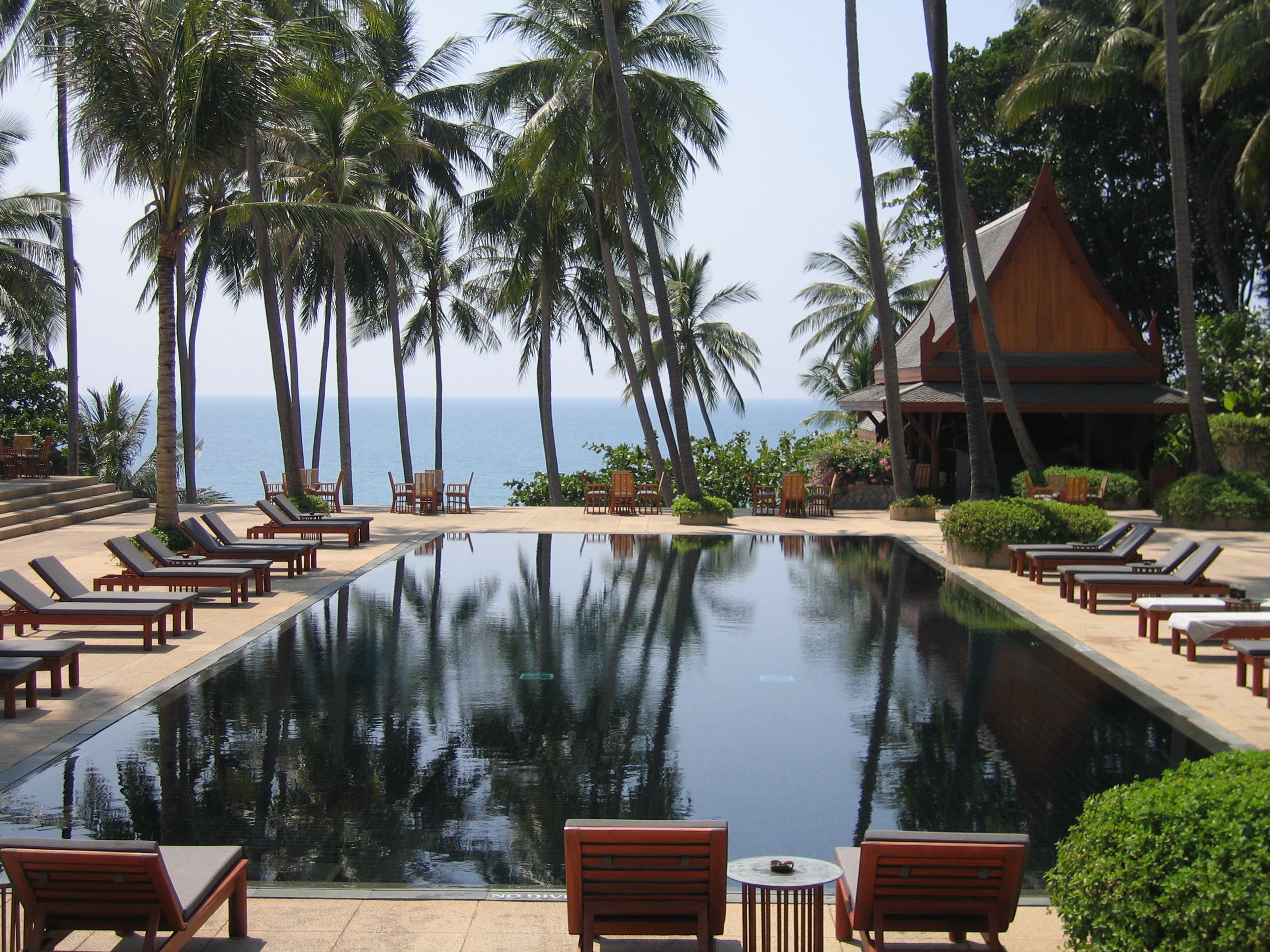 We paddled back to the beach and hung out there for a little bit longer. Crystal stayed down at the beach (and fell asleep), while Justin first went up to the pool, then started wandering around the entirety of the resort. Amanpuri is very large – there are about 40 rooms, but then there are also about 25 large villas spaced out over the grounds, not to mention the spa, the tennis courts, the restaurants, and the main area. We had seen in some books that Amanpuri was on Pansea beach, whereas in other books Amanpuri was listed as being on Surin beach. It turns out that both were probably correct. Amanpuri is on the end of a small isthmus, so it's surrounded on 3 sides by water. The villas are all near the north facing beach, while the main resort is on the west facing beach.