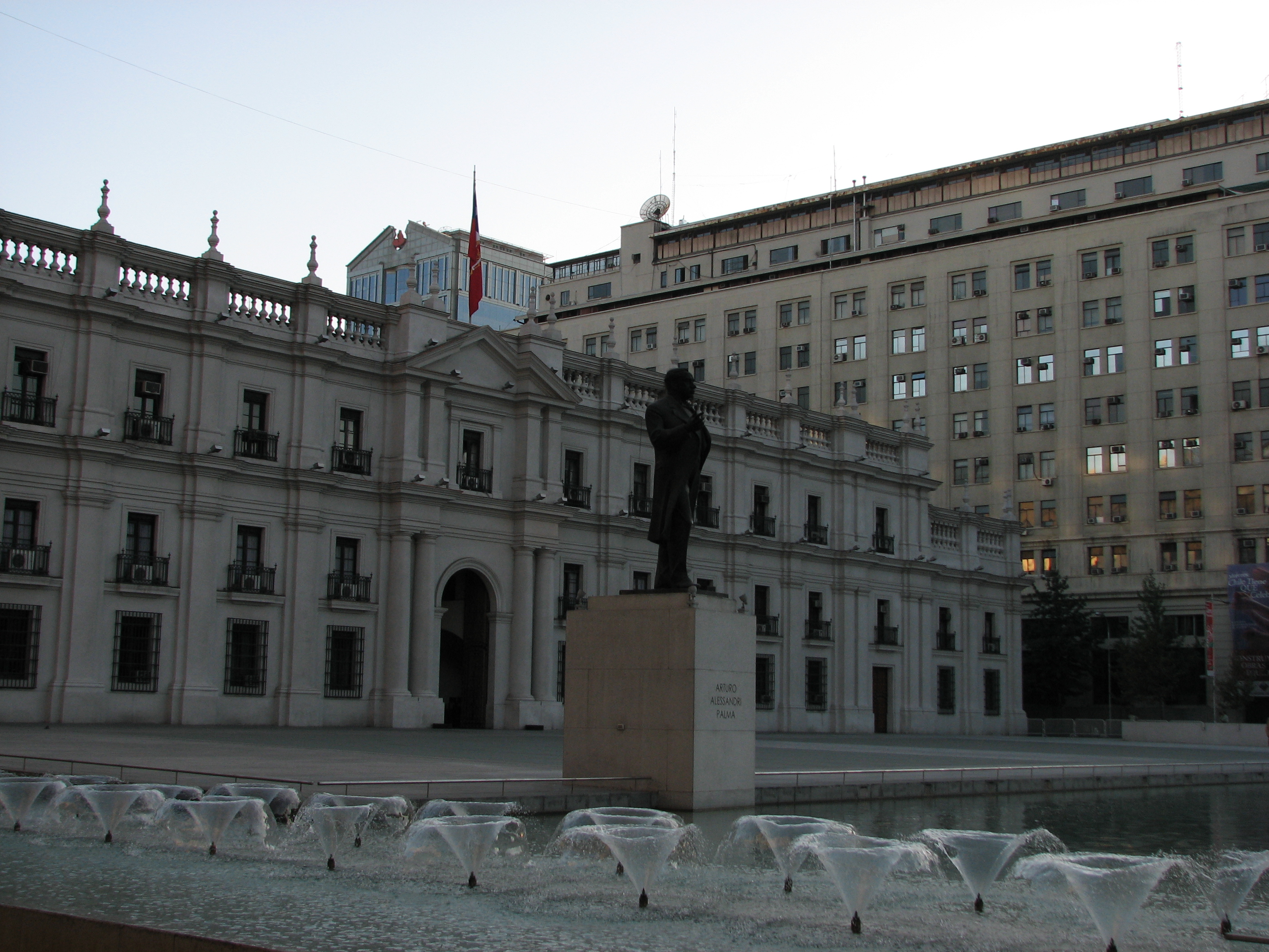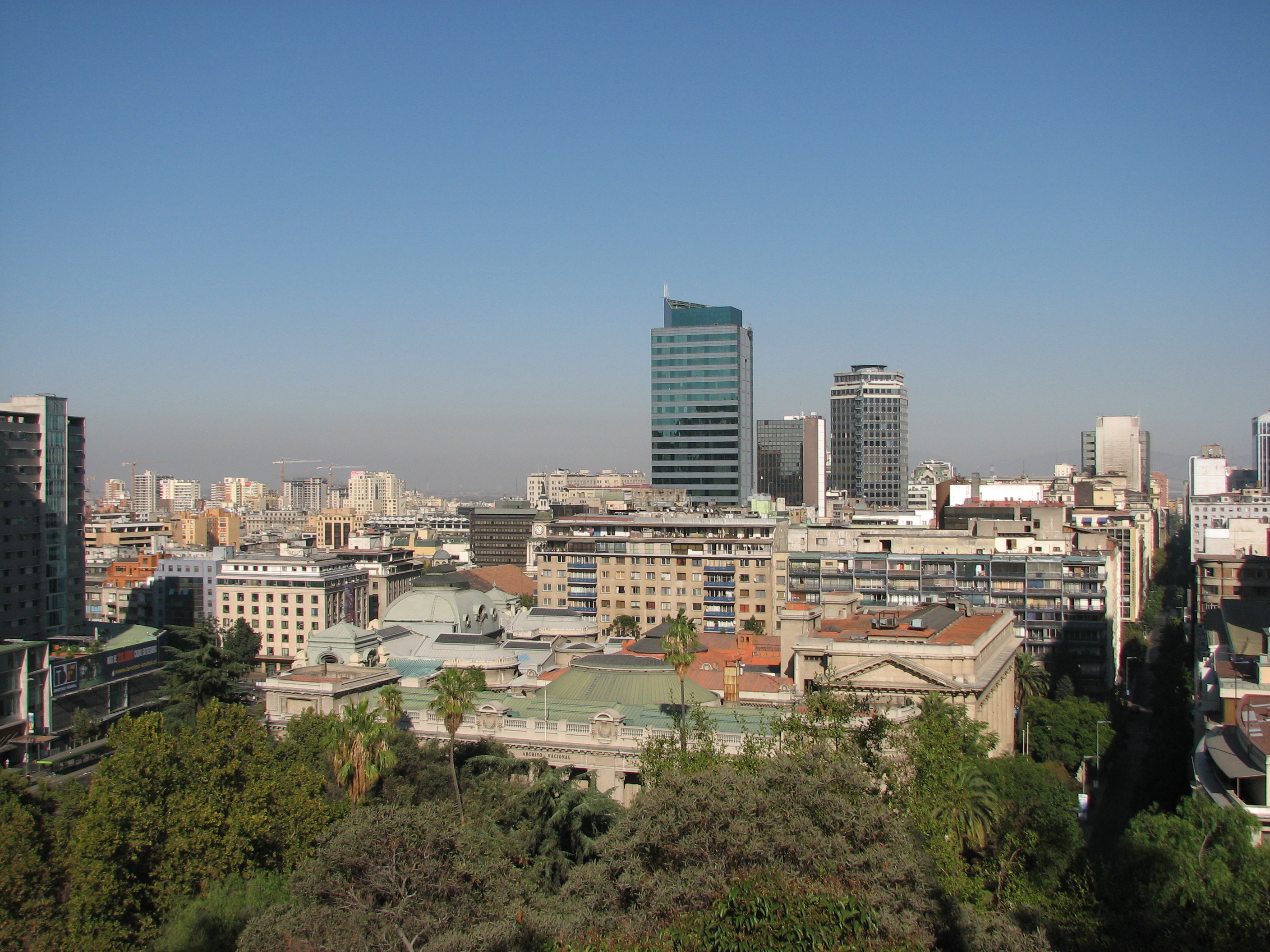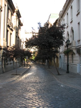 We drove on Bernardo O'Higgins east, in to Providencia. At some point turned left, going up into Bellavista, then came back, but a little farther north than we had gone out. We traveled past the entrances to Cerro San Cristobal, which he had visited the last time. We also drove past Azul Profundo in Bellavista, where we ate lunch the last time. Once back in downtown we drove around some more, basically killing time until 7:15 am when we would meet our guide Mariana. We drove past Cerro San Lucia, which is a shorter hill than San Cristobal, but more in the middle of the city.