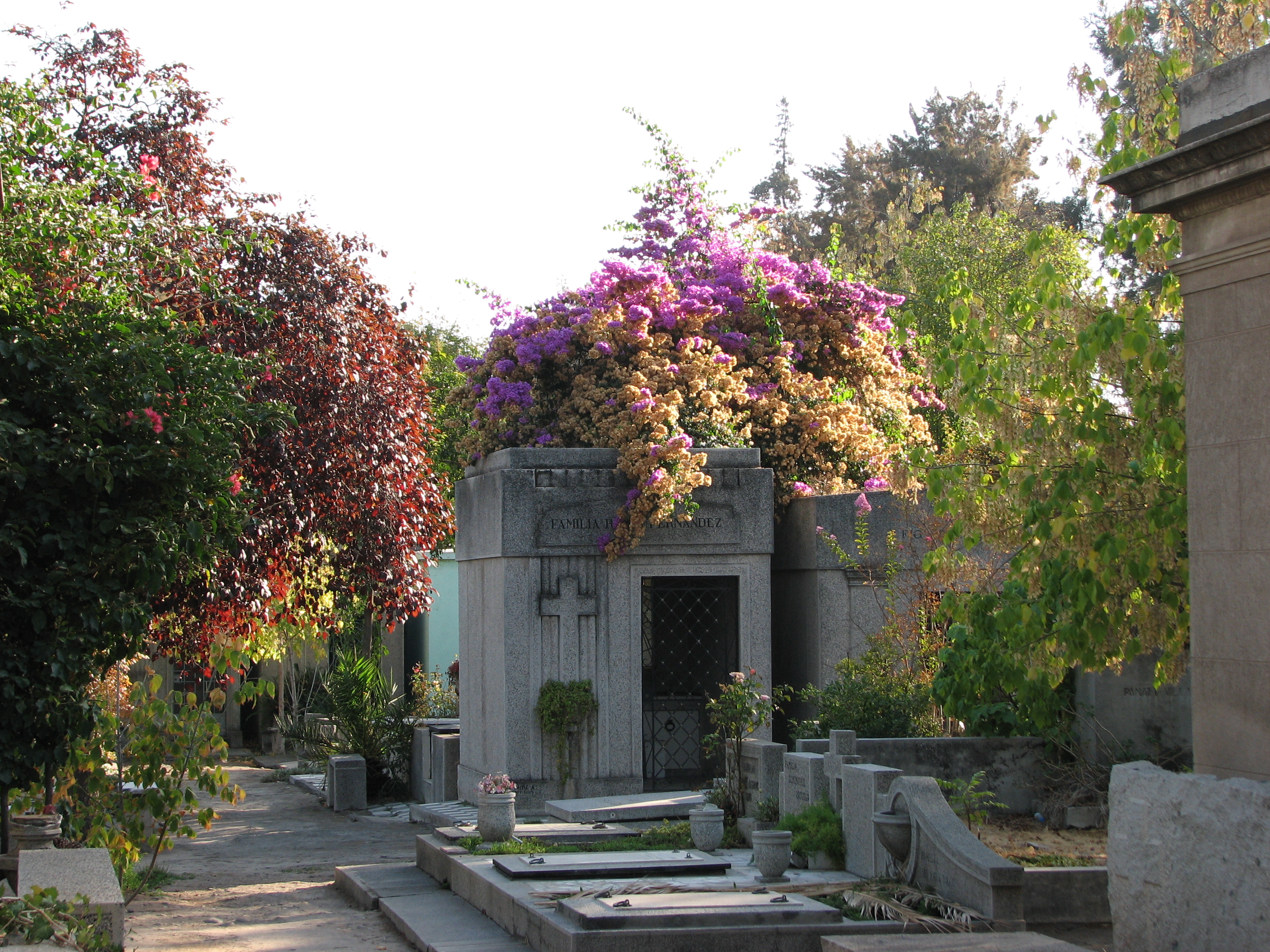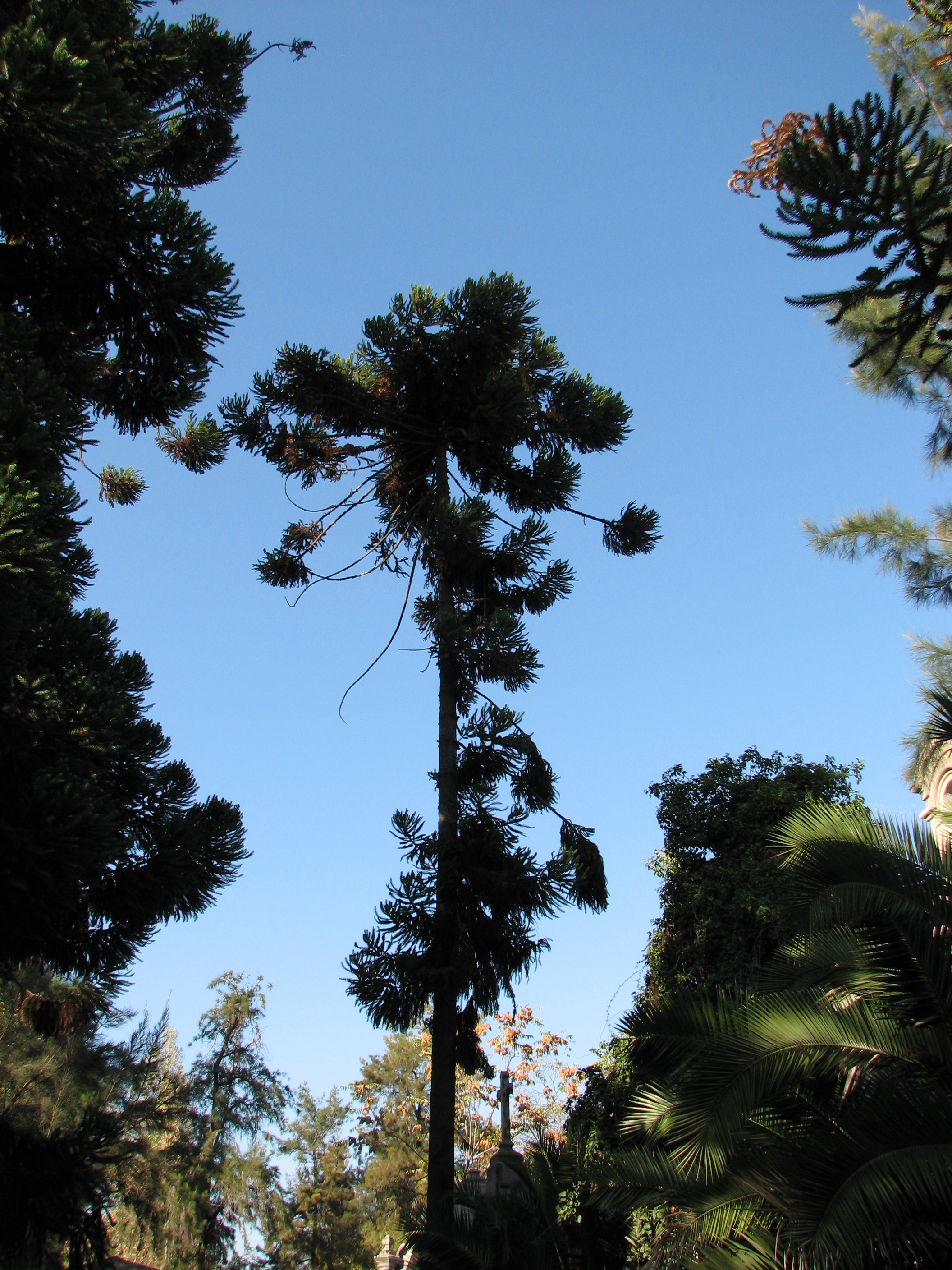 Since we had been to Santiago before, and had seen the "regular" day trip stuff already, they took us to some unusual places. One was to the cemetery in Recoleta. We had expected to go to a cemetery in Recoleta, but in Buenos Aires, not Santiago. It was very interesting, and was enormous. We saw another street dog, this time a puppy who was whimpering. We also saw some unusual Araucarias.