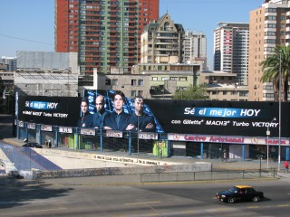 From there we went to Cerro San Cristobal. It is right in the middle of the downtown area, and is basically a large hill with vantage points all around. The climb to the top is not difficult at all, and the views are very nice. On the way down we noticed a Gillette advertisement. It was basically the same one we see here in the U.S., but here there are only three athletes. In Santiago, the fourth athlete was actually the central figure, Brazilian footballer Kaka.