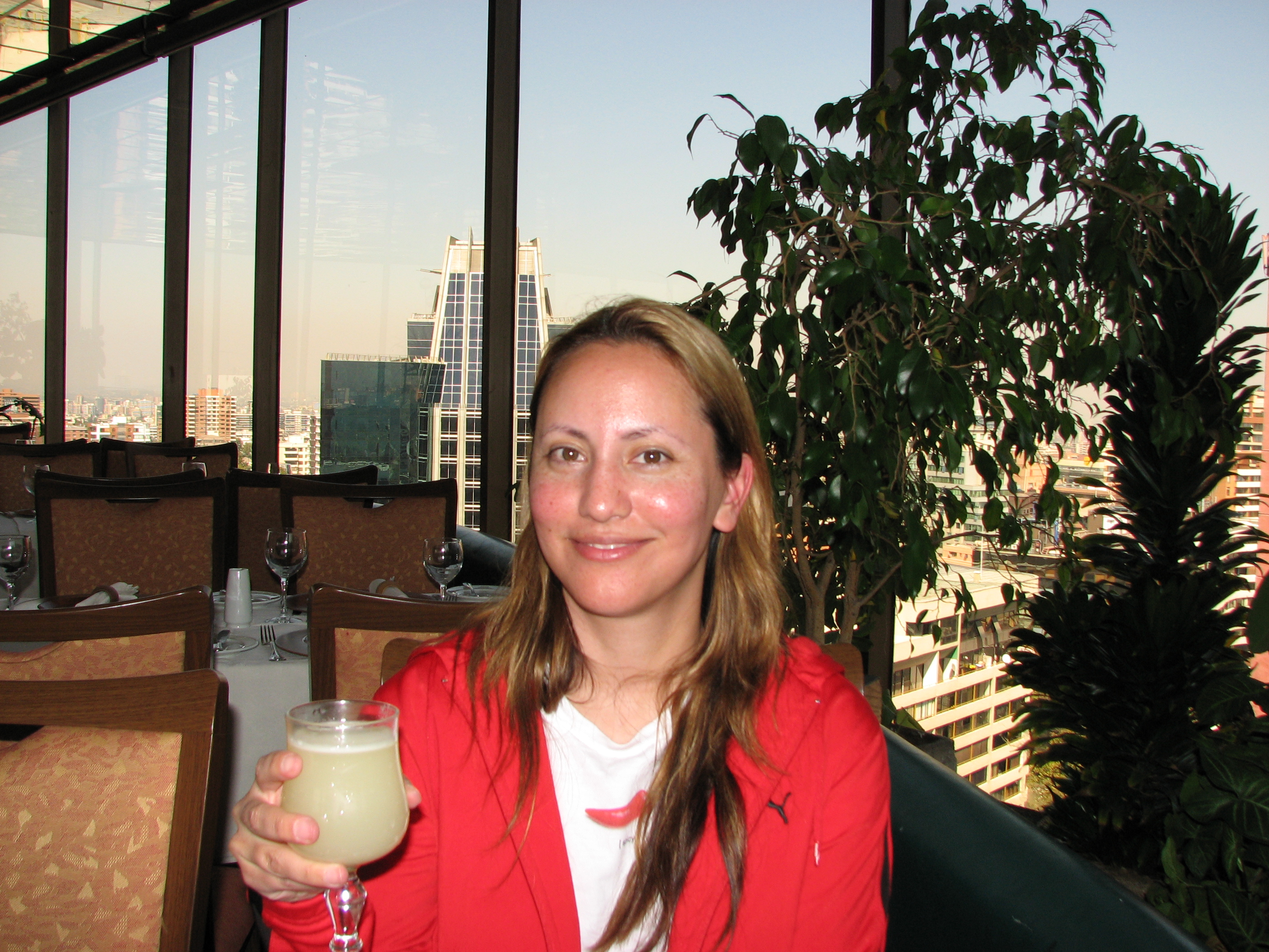 We left there and went to lunch at Giratorio, a rotating restaurant going out towards Bellavista. We were literally the first ones there - they were still setting up. People eat lunch late in Santiago, and it's the biggest meal of the day, usually around 3pm; so for us, it was basically brunch. The view was very nice, and we did get our Pisco sours - just like last time.