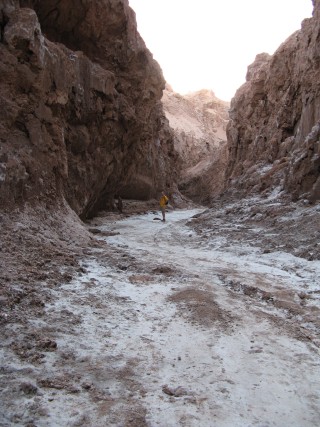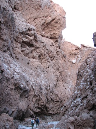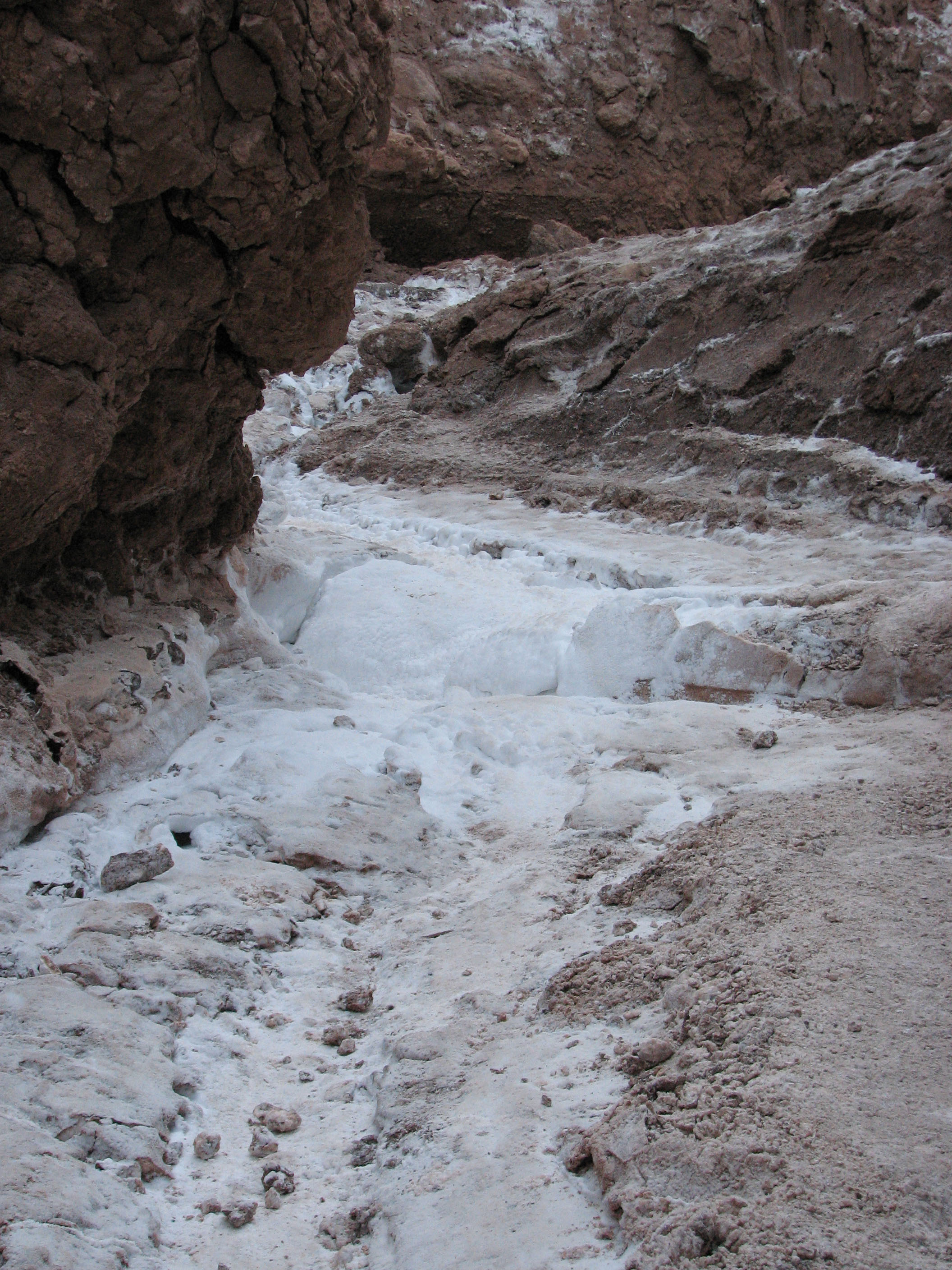Near the end there was a salt "river," where the salt was concentrated in a couple places and actually looked like snow. The walls cracked loudly in many places, from differing expansions due to heat and cooling. We got to the end at the perfect time, since the sunlight on the Andes turned them pink.