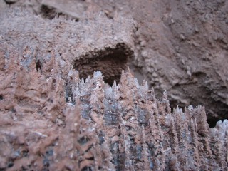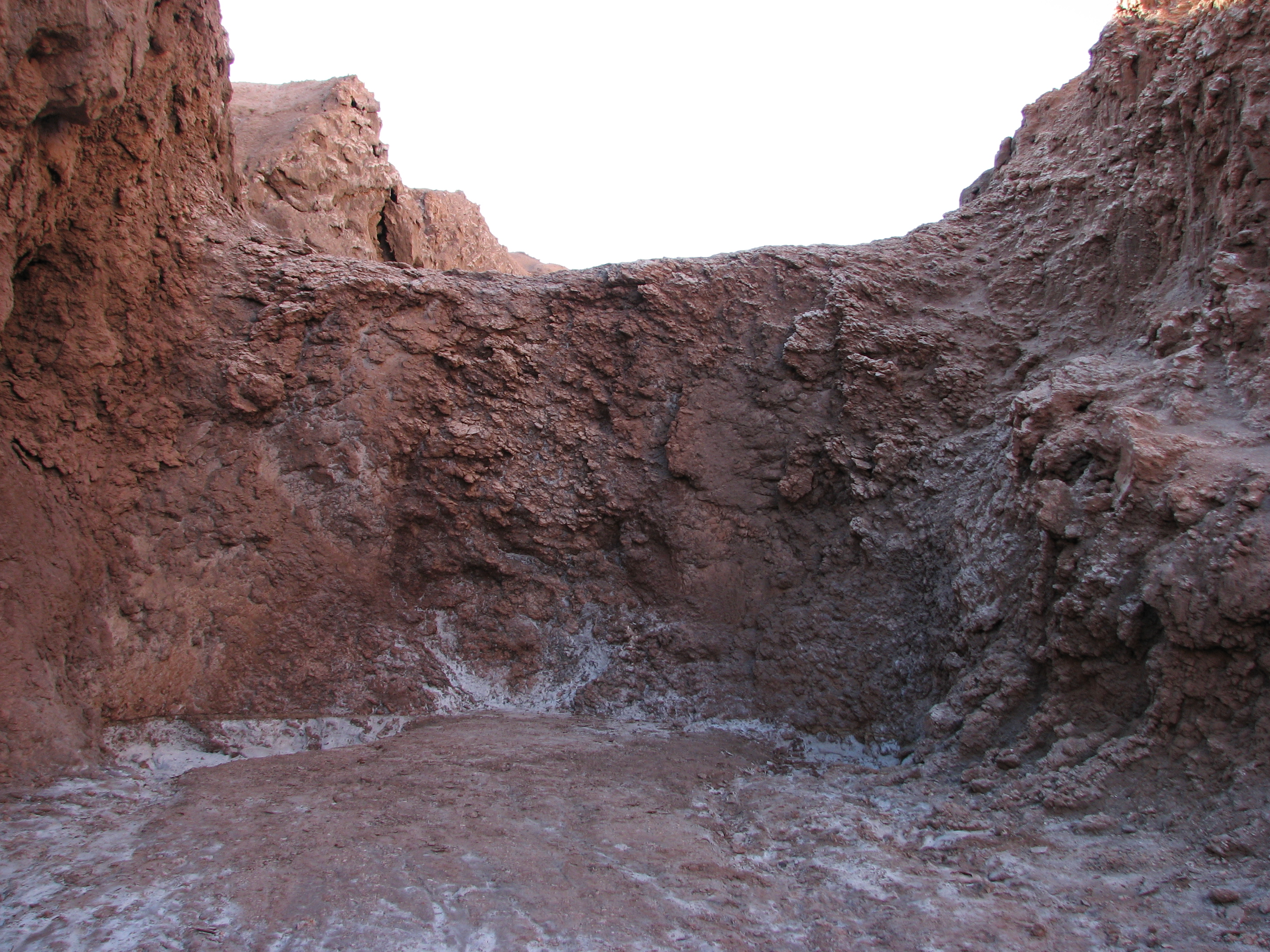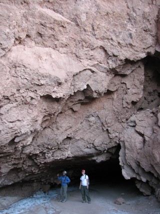We eventually entered the salt range and started walking through canyons formed by runoff over millions of years. The canyon kept getting deeper and deeper the longer we walked, with the walls reaching at least 100 feet above us by the end. The walls were a combination of clay and gypsum and salt, with salt being more prominent in certain locations. It reminded us a bit of the Choco Canyon stage on Mario Kart 64. In two places we had to carefully step down 8-10 foot cliffs, which was difficult for Justin with the size of his feet. There was a sizeable cave we walked around at one point.