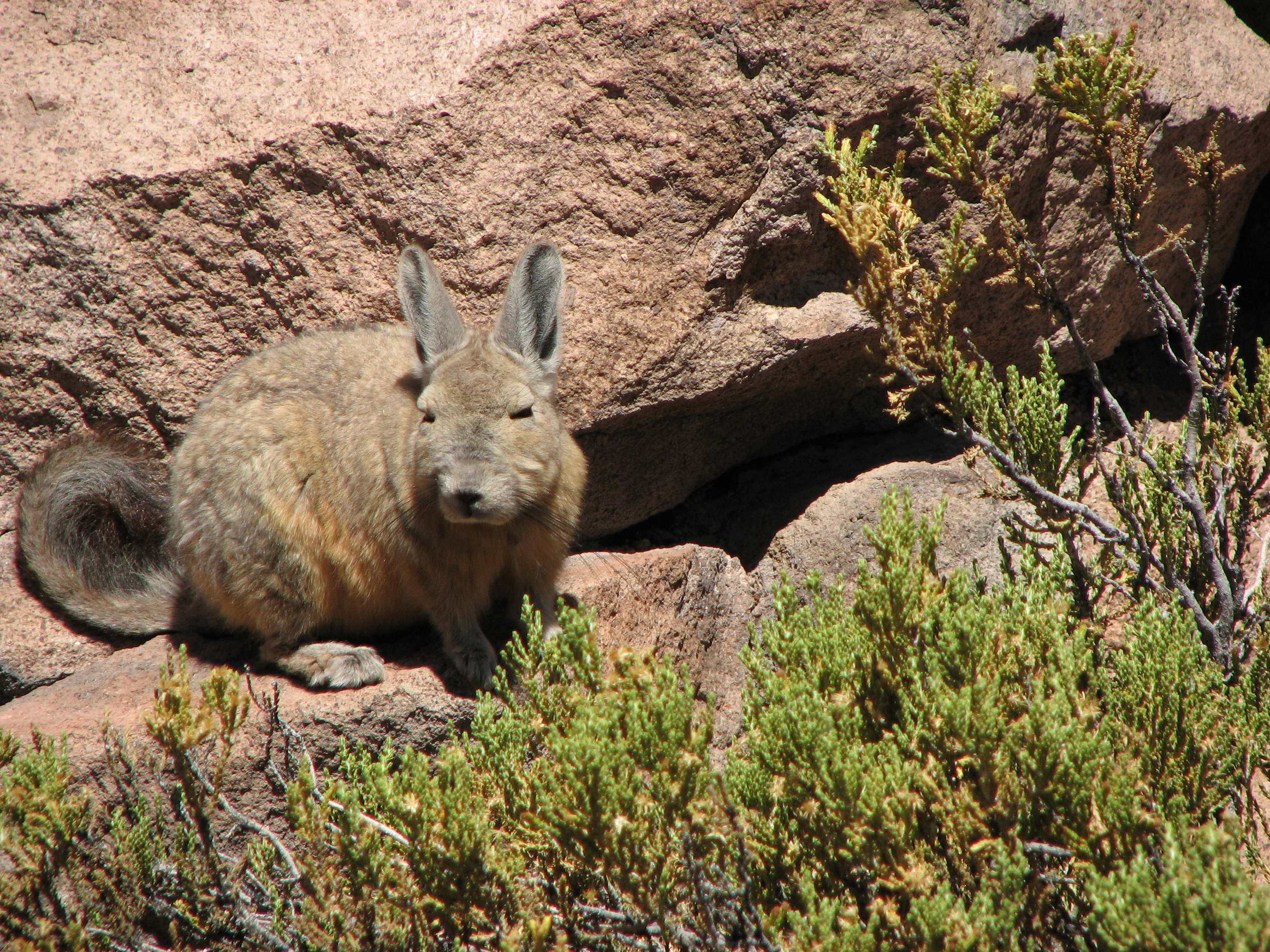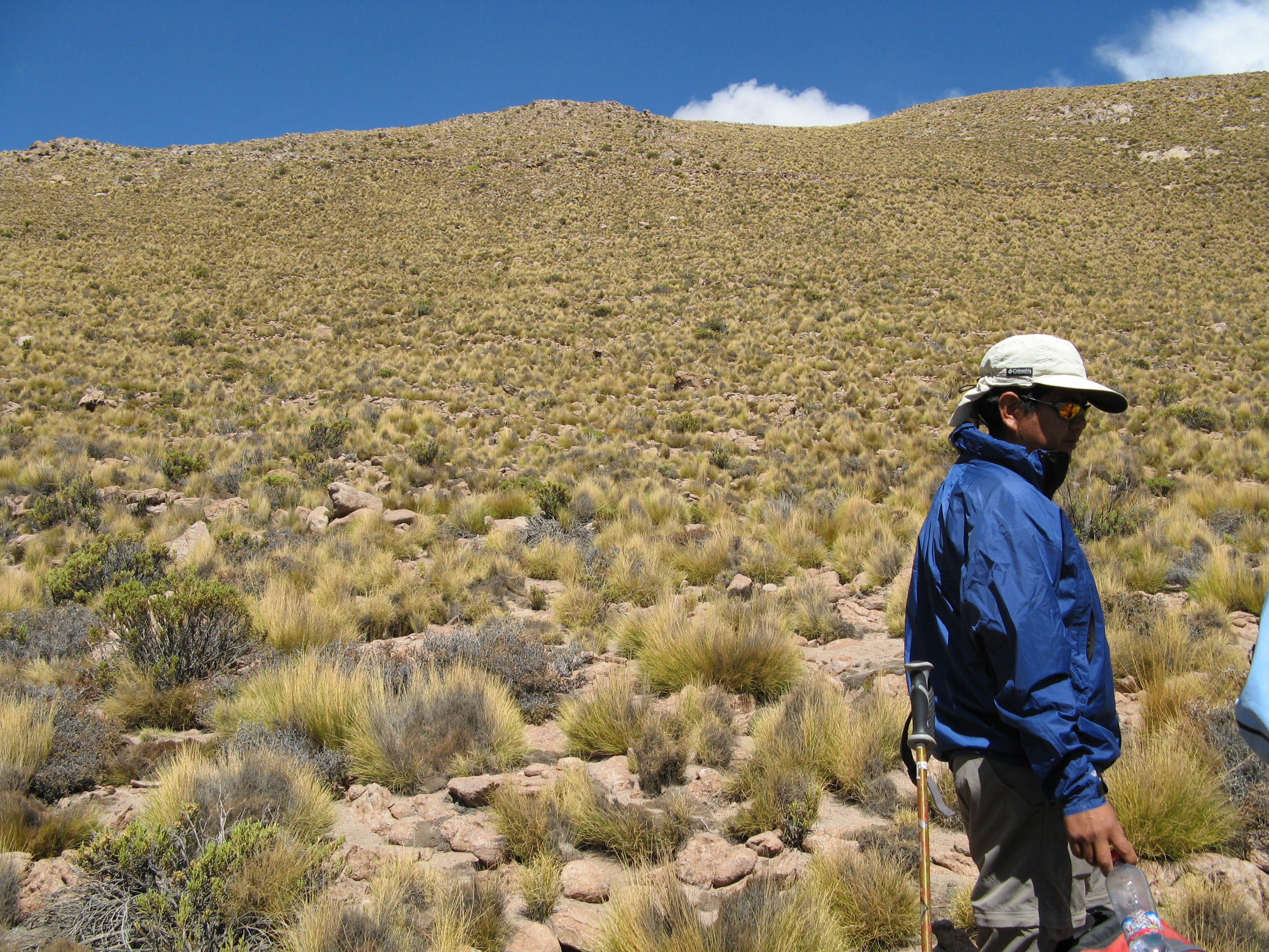The return would take us two hours. We did not go back the same way, we kept circling the mountain. We were basically climbing up the riverbed, with not much to look at unless we turned around and looked at the progress we had made. In this area there was no wind, so people shed some layers, and Justin changed hats. On the way up we saw another Viscacha, this time with his or her mate.