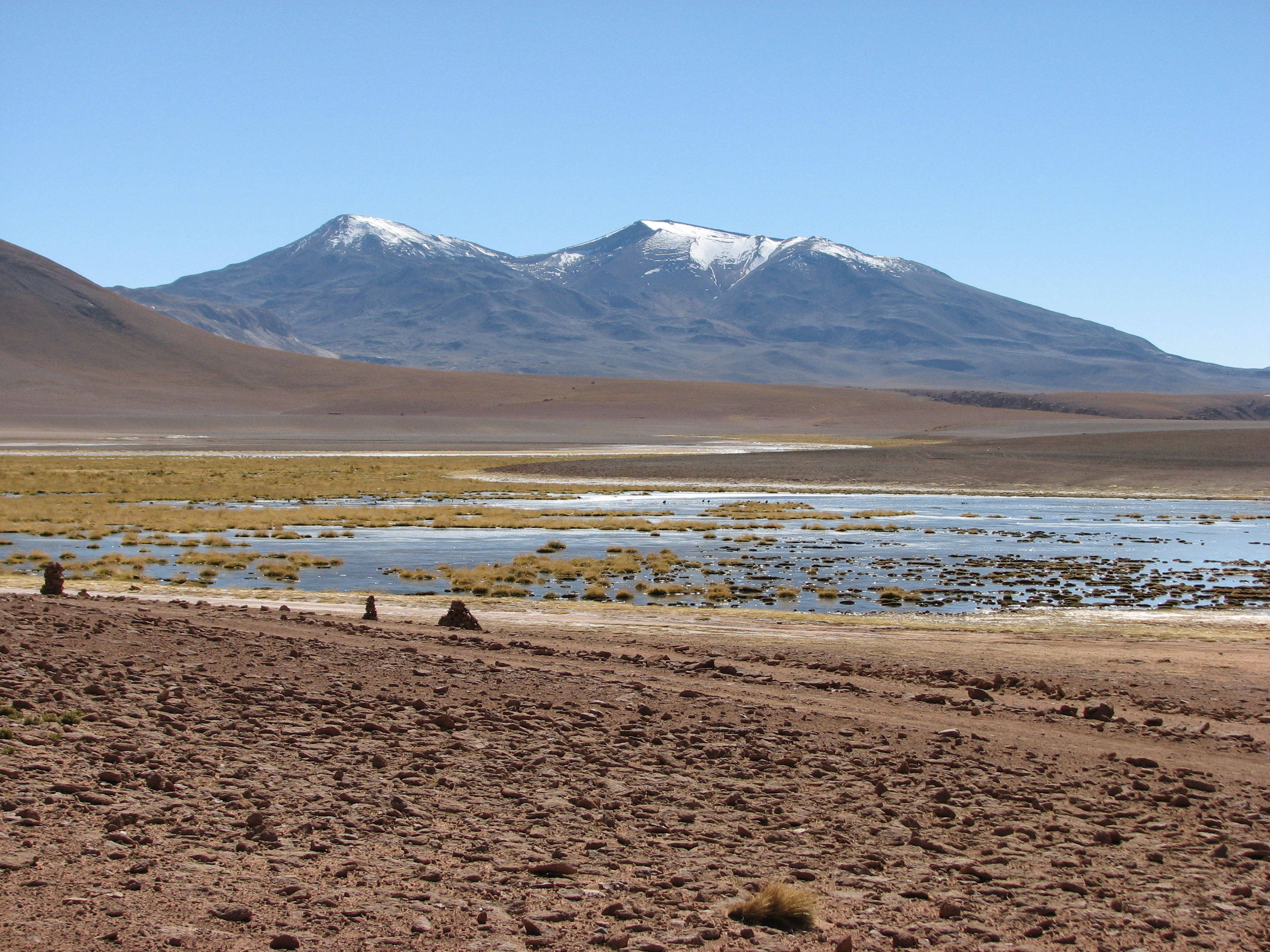 When we got out of the car for this, it was freezing and the wind was blowing quite hard. Just before we got to our destination, we stopped briefly at the Tatio geysers - right at the base of the Andes - which we would coming back to later after we were done. When we started our journey, we were at 4500m in elevation, and dressed like we were backpacking through Antarctica (or getting ready for a Captain Morgan commercial shoot).