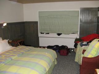 The hike down was treacherous because everything was slippery; Justin fell down yet again. We were back down the mountain at about noon, with everything soaked. Back at our hotel room, we put on some dry clothes and then ate lunch. There was hardly anyone there - most of the people were apparently on full day treks. Since we had no dry clothes, since it was still raining, and since we were exhausted, we just slept instead of going on our afternoon excursion.