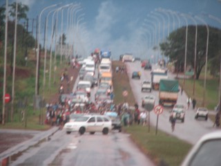 Just before noon we found out our plan was fine, we'd just have to pay for our new room, which was well worth the peace of mind. We ate, then went to go check out the strike on our way to Brazil. Our driver drove up to the front of the line, passing on the left, which seemed unsafe but for the fact no one was driving on the road. We watched it for about 90 minutes, while listening to it on the radio (they were supposedly negotiating a peace).